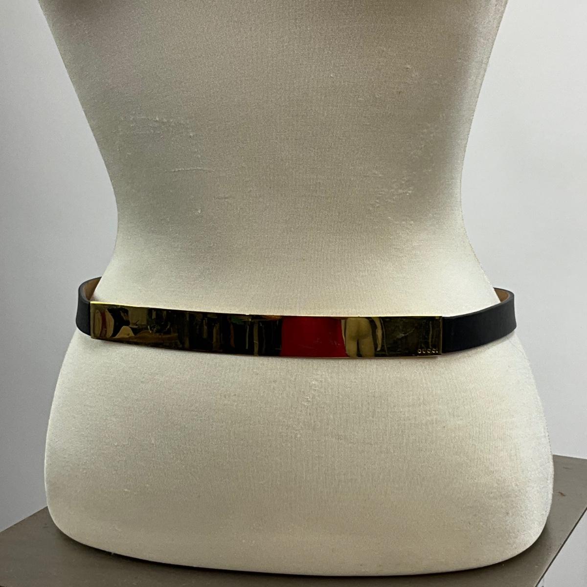 Lot 1510. Gucci Women’s Black Leather Belt with Gold Tone