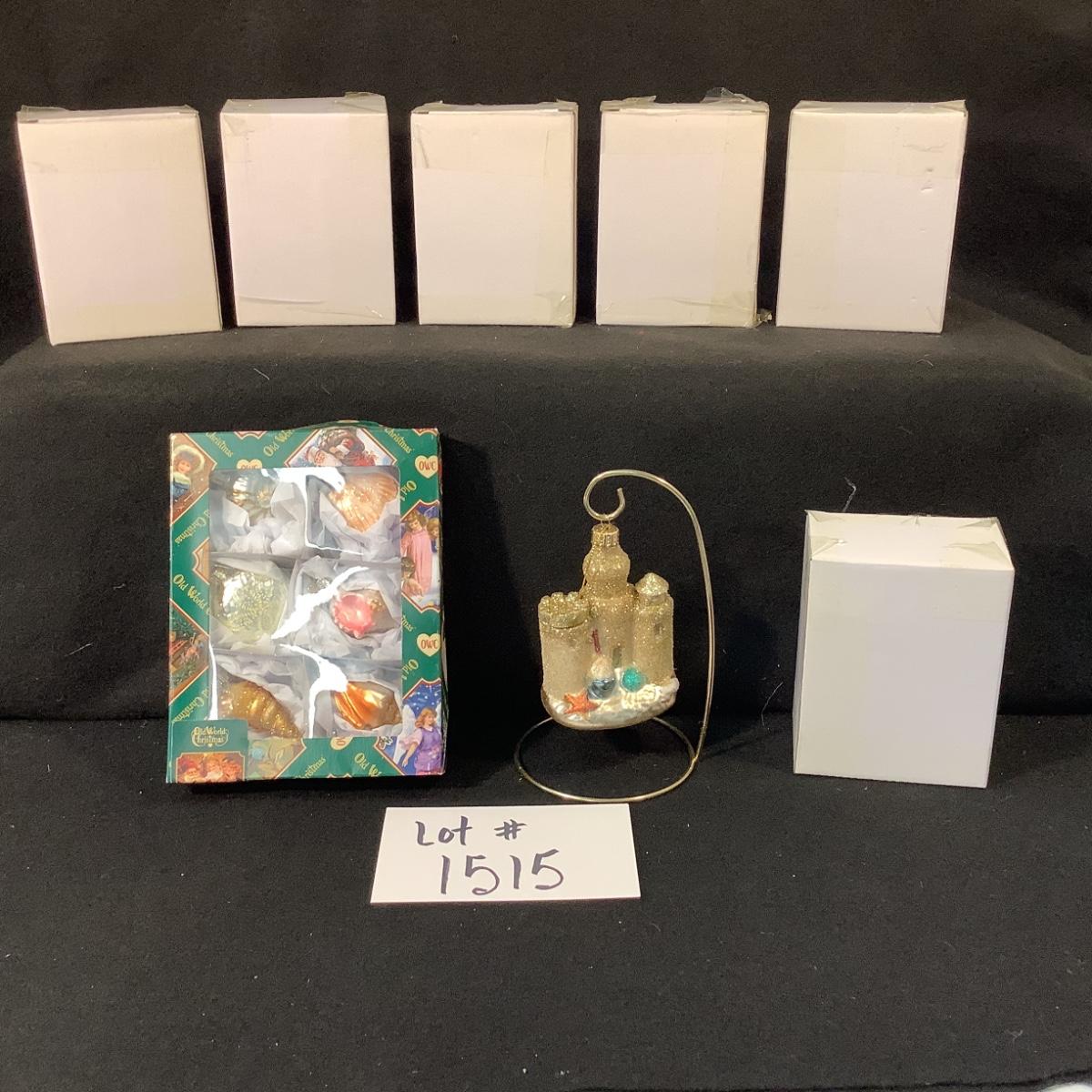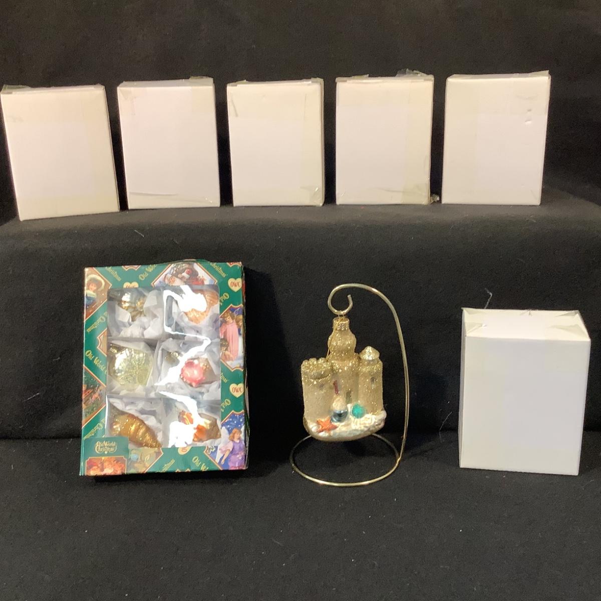 Lot 1515. Six NEW IN BOX Sandcastle Ornaments & NEW IN BOX Sea Shell Ornaments