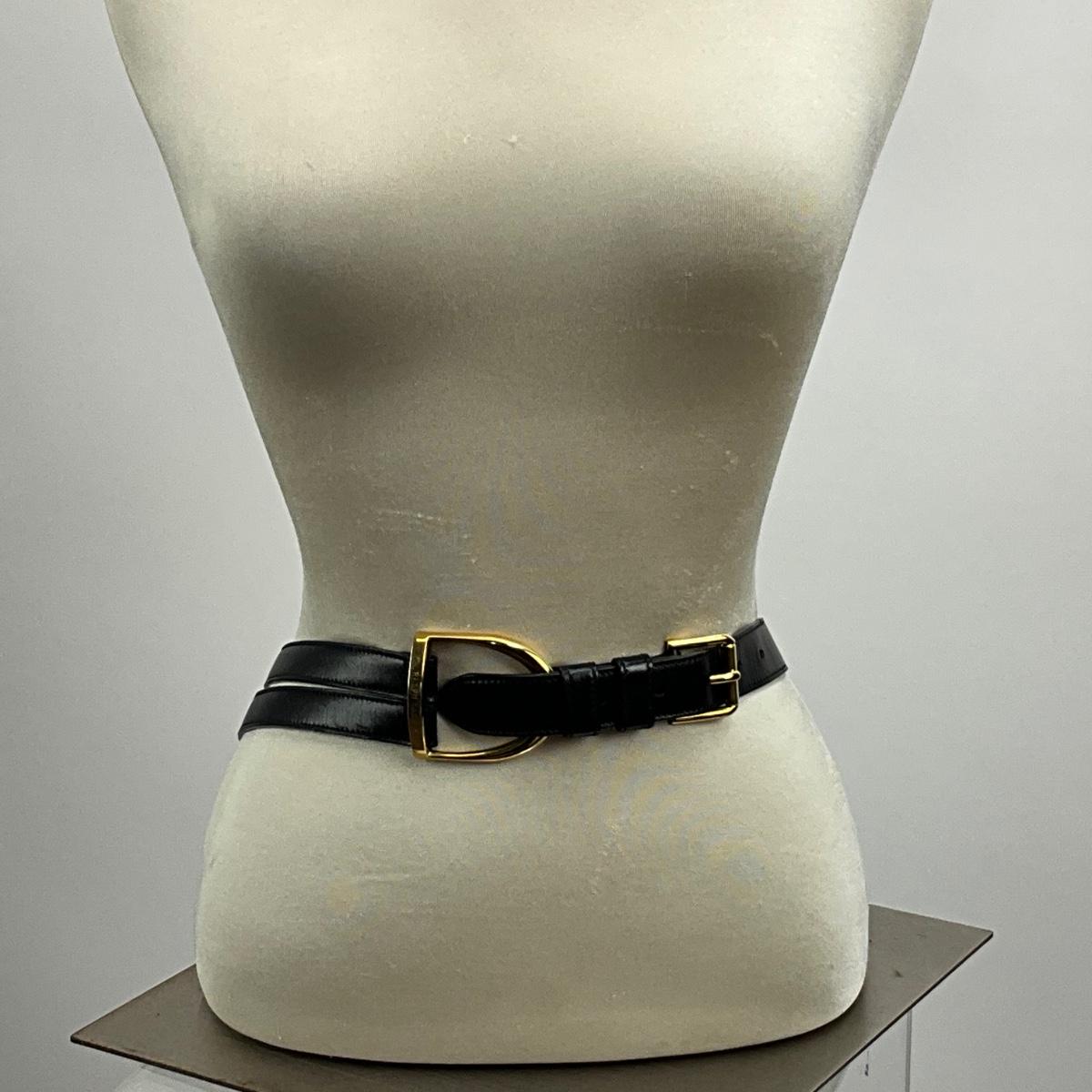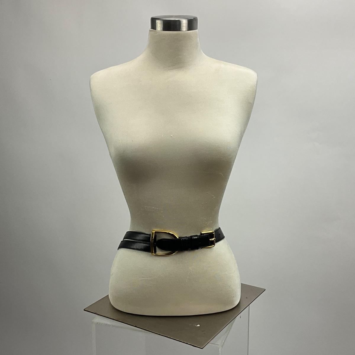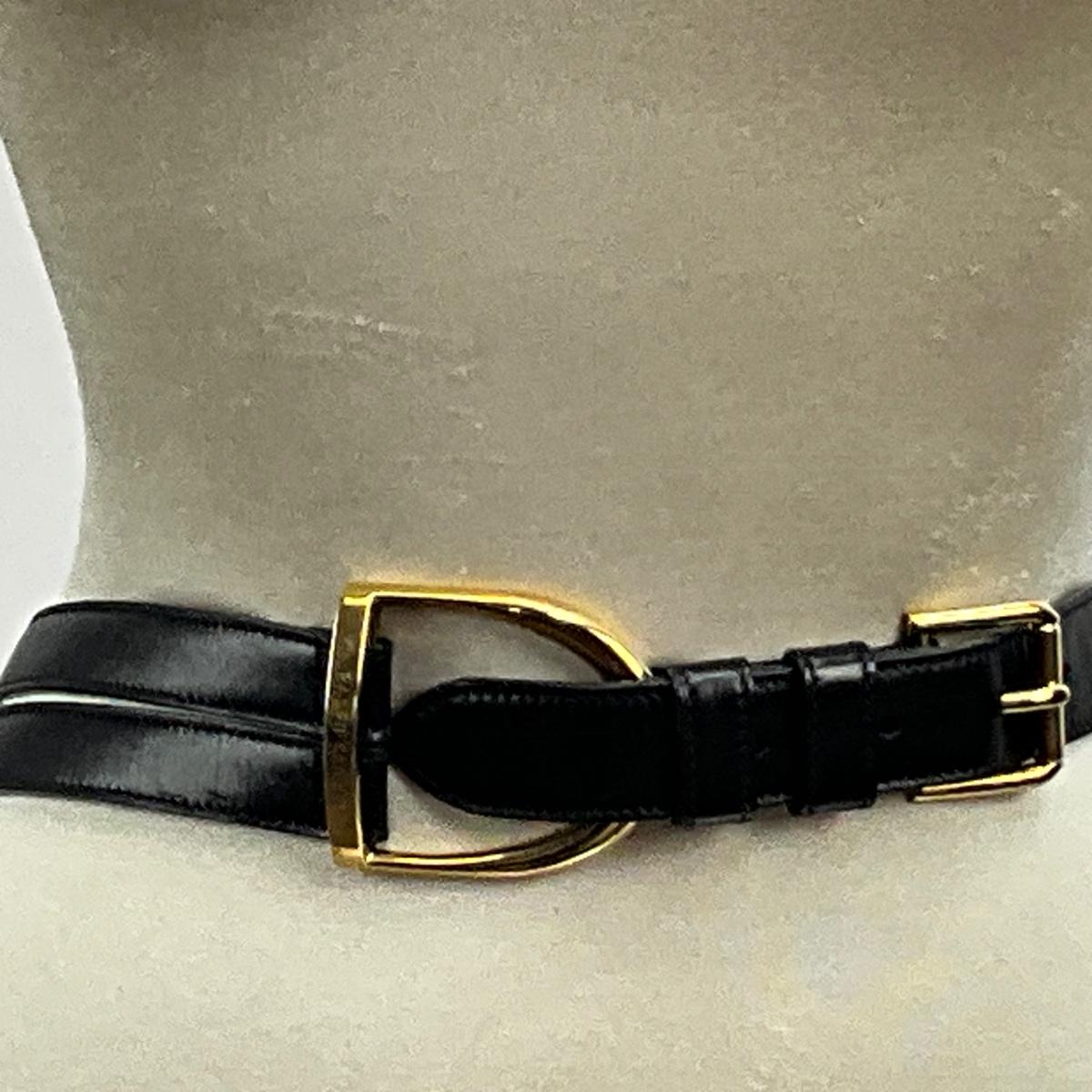 Ralph Lauren, Black Leather Belt with Gold Tone Horsebit Hardware