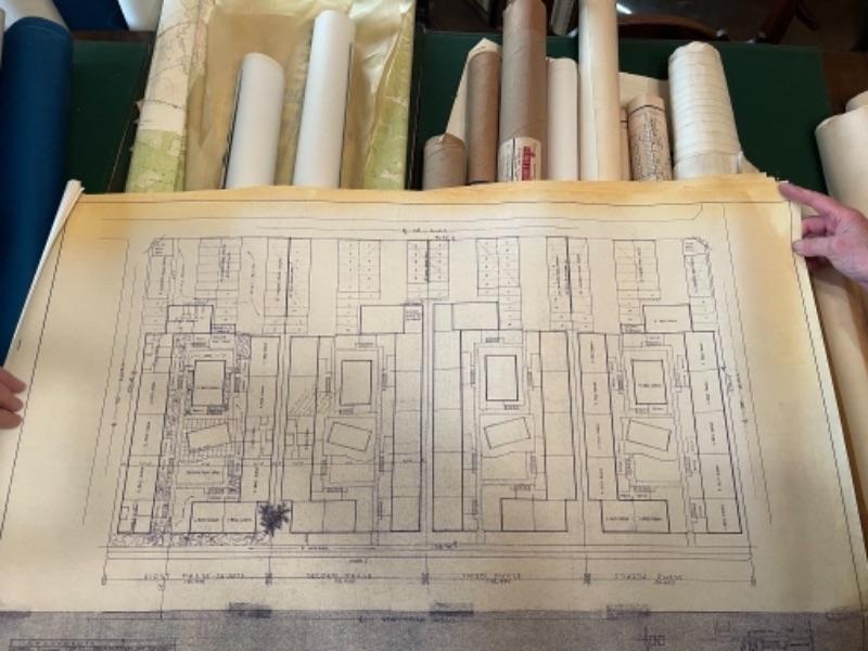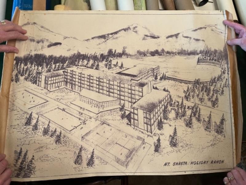 Lot 151DR. Circa 1960s blue prints and architectural designs, Theatre Enterprises, San Francisco, Mt Shasta Holiday Ranch, hotel in Fresno, Robert Trevers designs, maps, etc.--$195