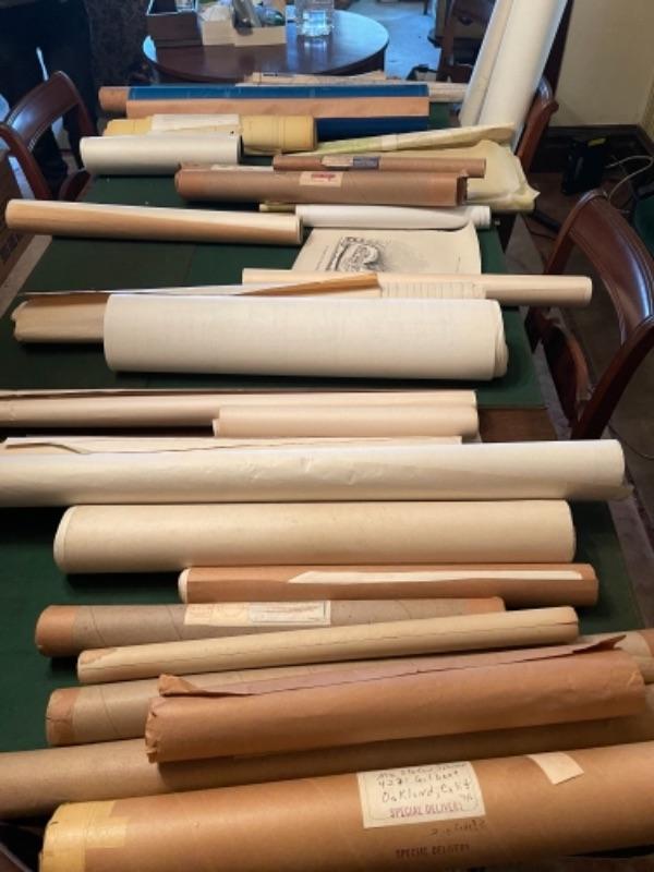 Lot 151DR. Circa 1960s blue prints and architectural designs for California properties and buildings, i.e., Theatre Enterprises, San Francisco, Mt Shasta Holiday Ranch, hotel in Fresno, Robert Trevers designs, maps of San Francisco, Bakersfield, Alberta, etc.--$195