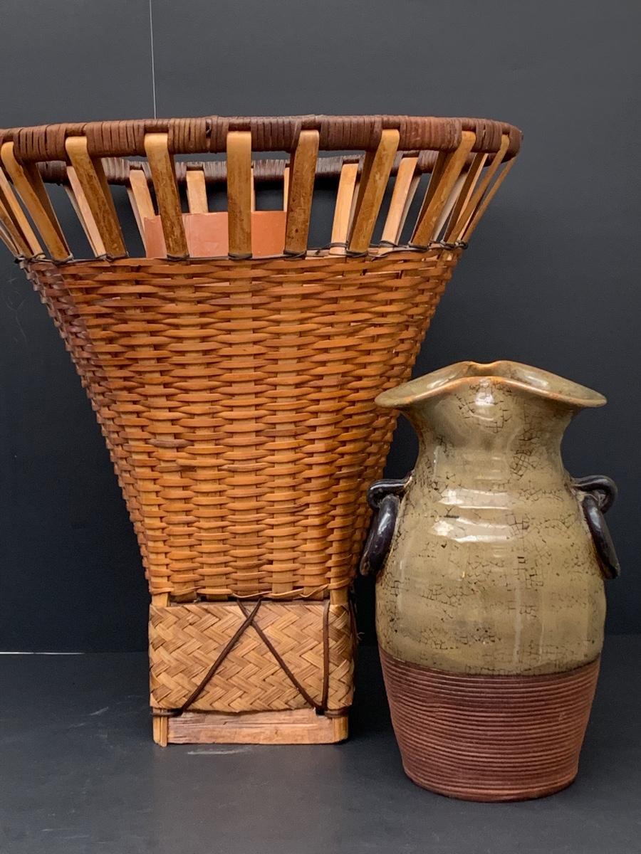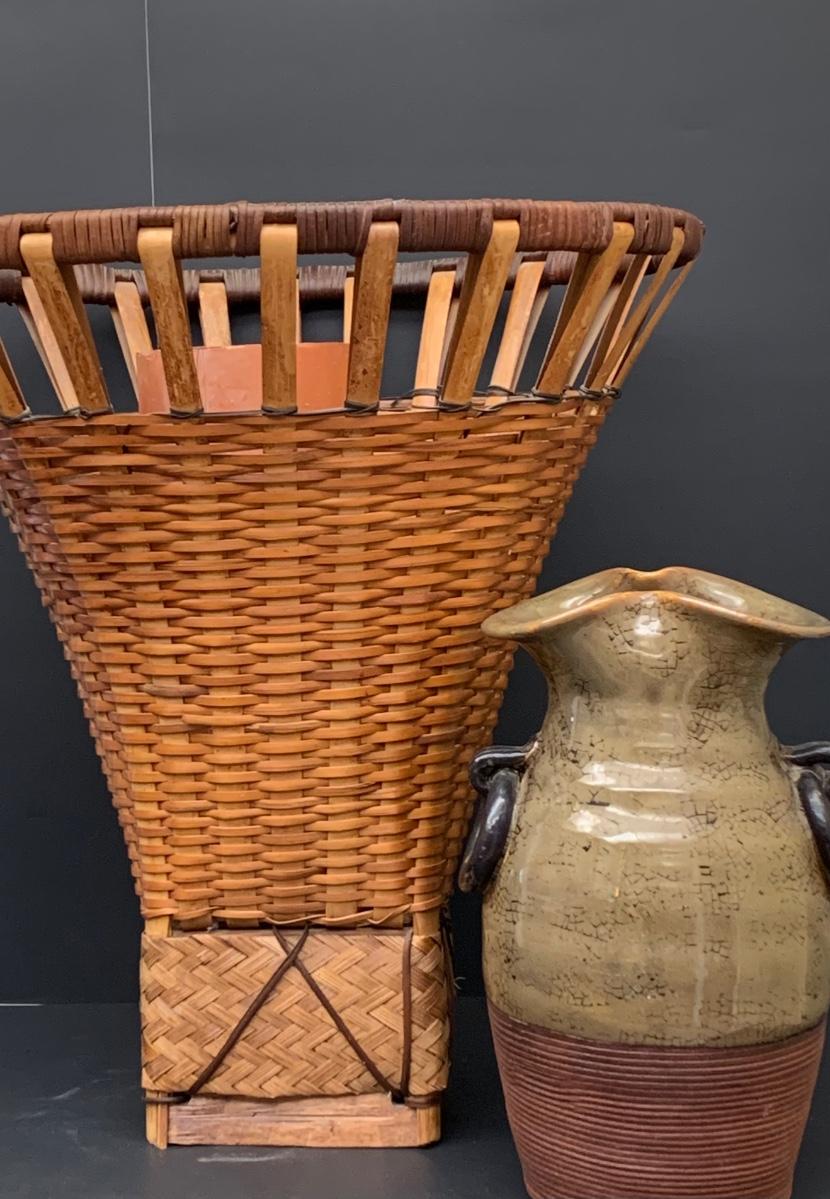 Large basket great for large floral pieces and pottery vase.