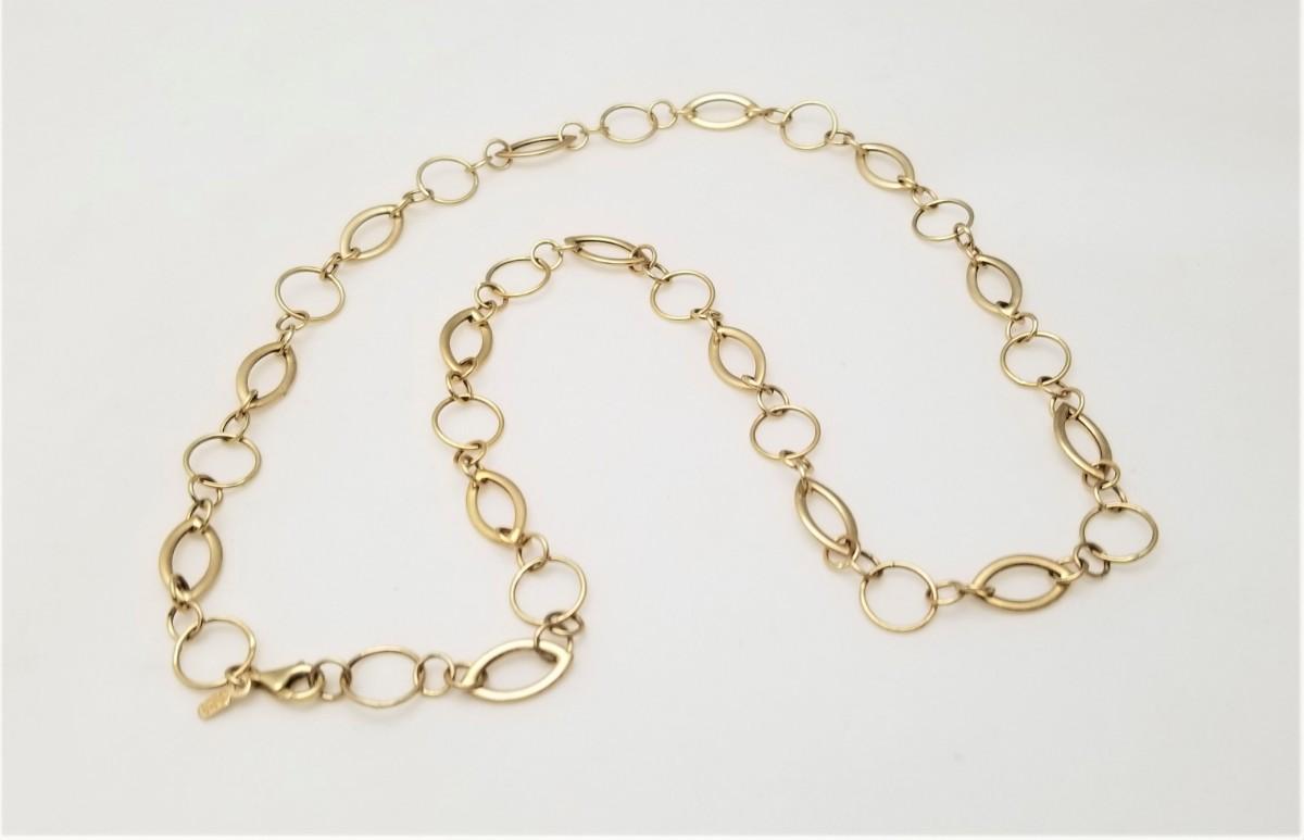 Marked and tested - 14kt yellow gold link necklace. Made in Turkey. 24" long. Good condition. Starting bid is scrap price.