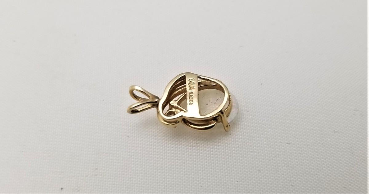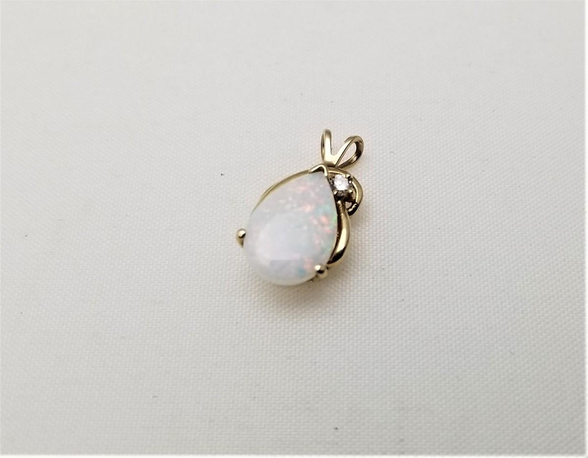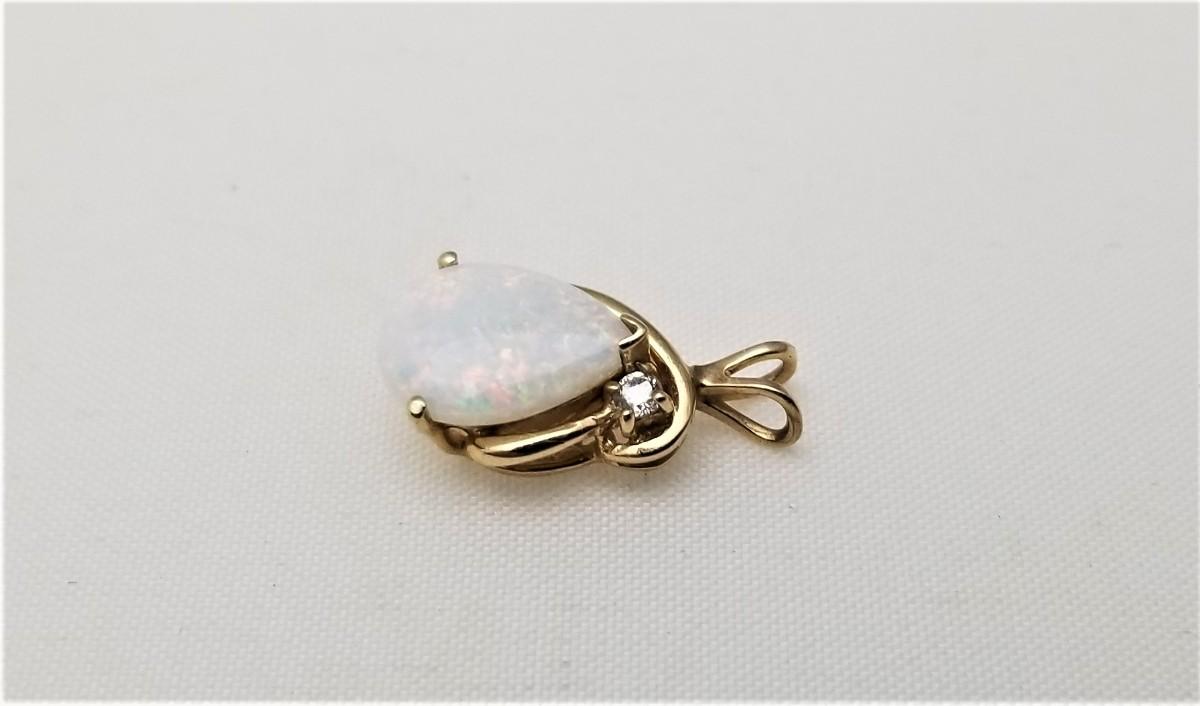 Lot #152  14kt Yellow Gold Pendant with Oval Opal and small diamond