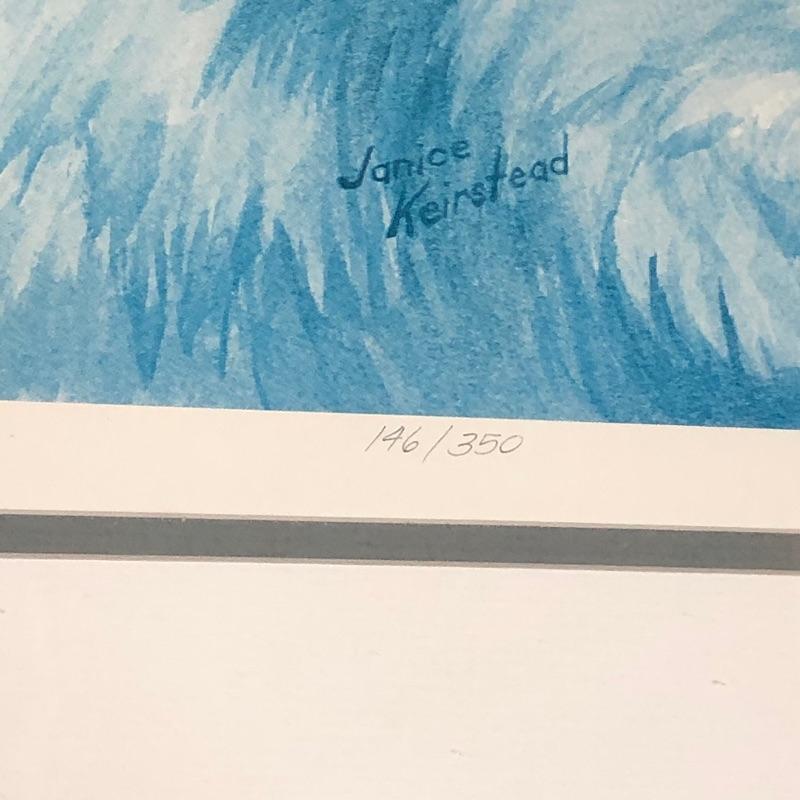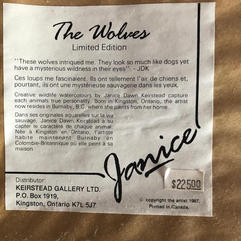 This stunning Janice Keirstead numbered print is 146/350 and titled “˜The Wolves’. Signed and includes a certificate of authenticity. It appears to have some bleaching from sunlight exposure.