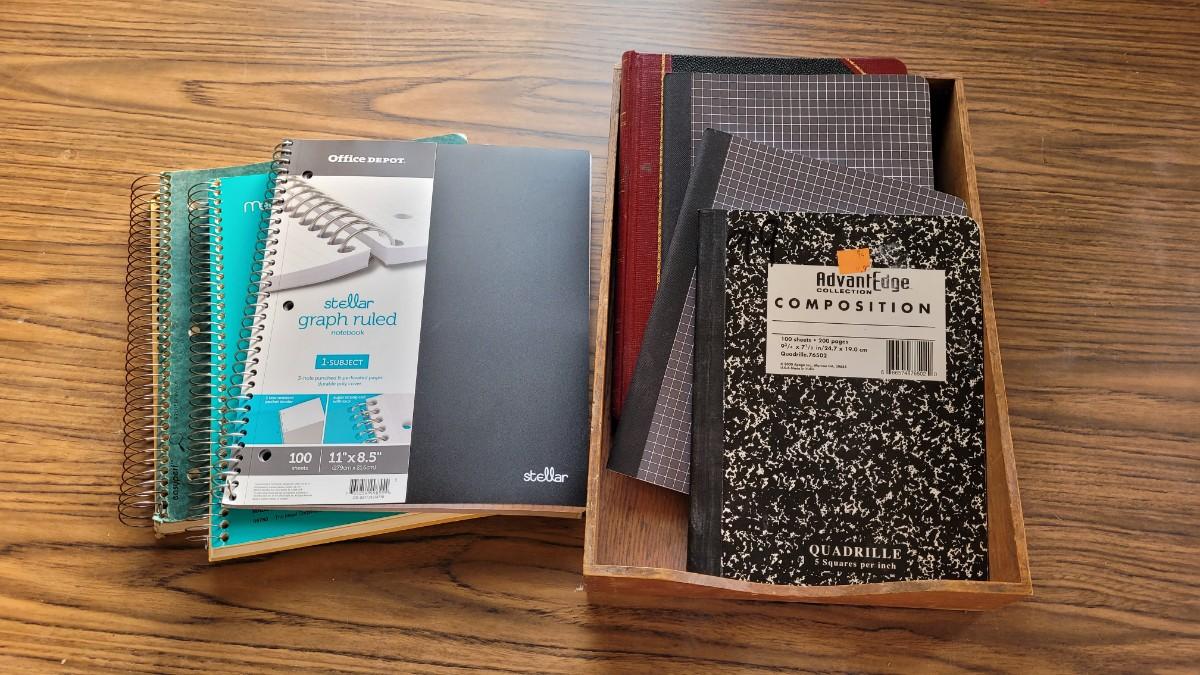 Lot 152: Assorted Unused Notebook Paper Pads + Wooden Desk Tray
