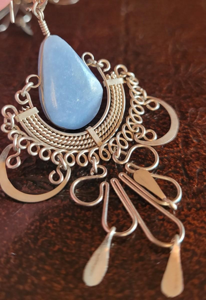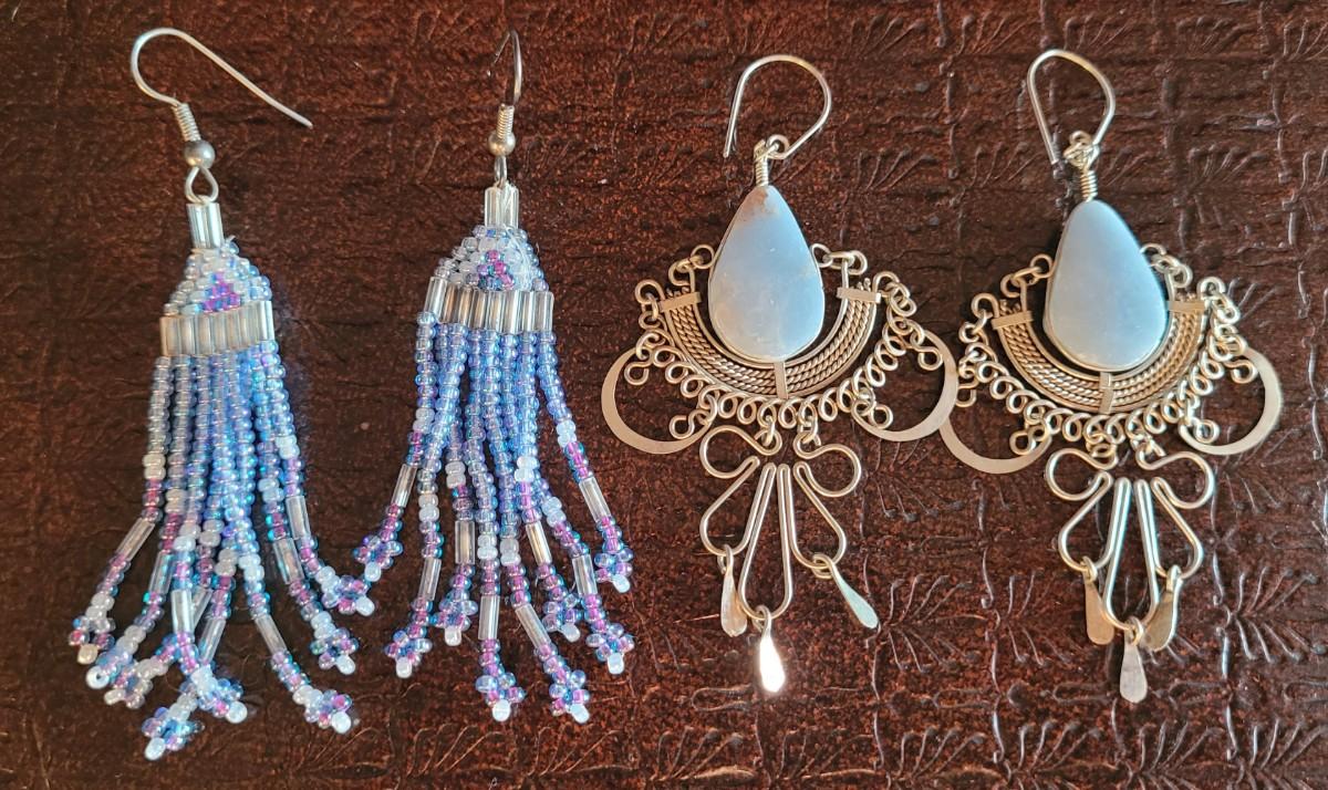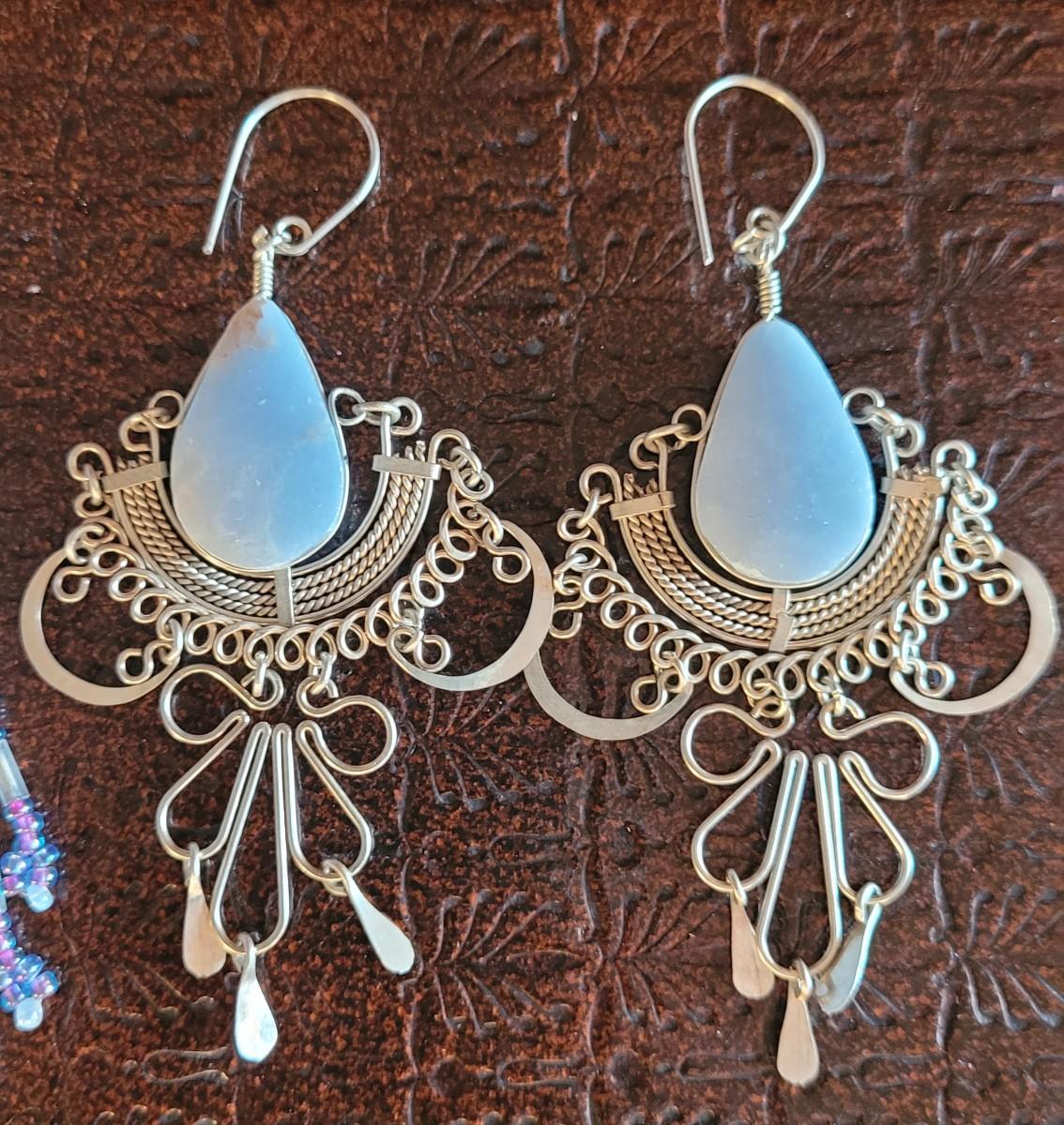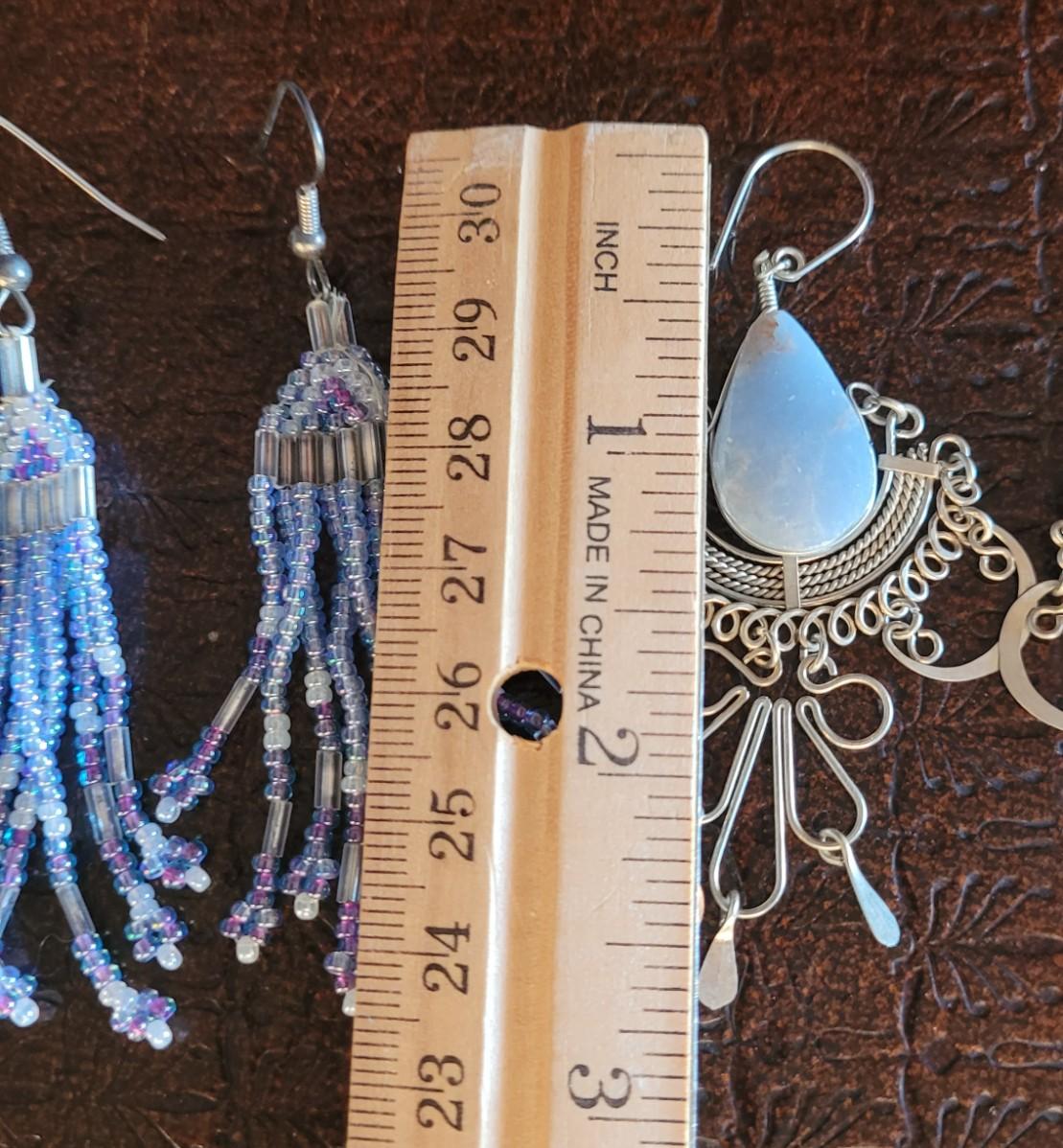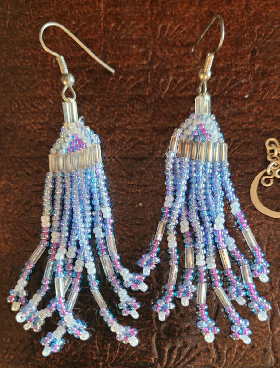 Silver and stone Earrings ☆☆ Beaded Fringe