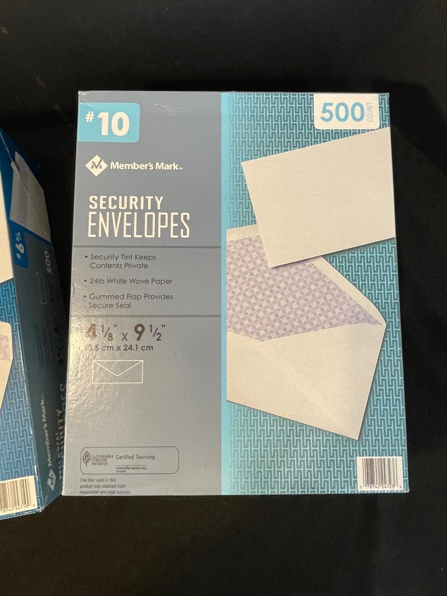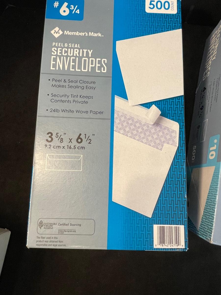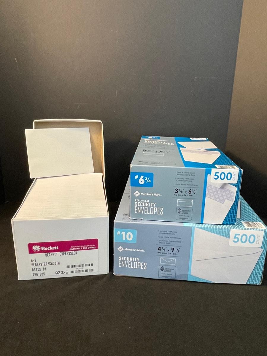 3 boxes of various sizes of envelopes, 4 1/8" x 9 1/2" and 3 5/8" x 6 1/2"