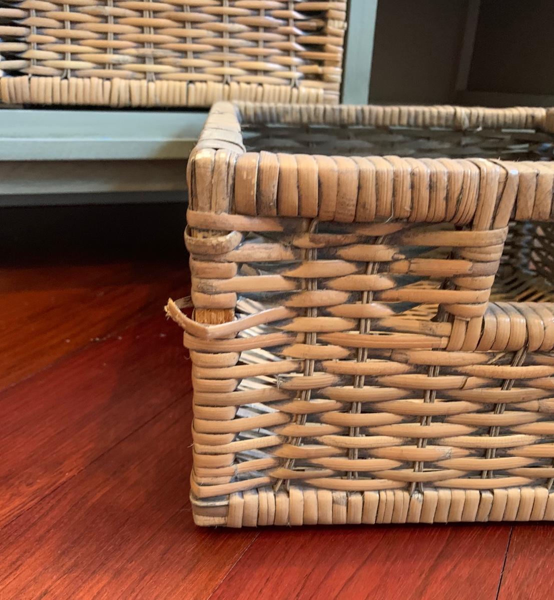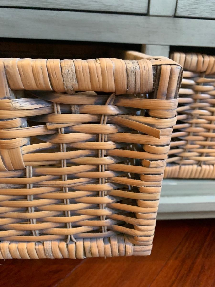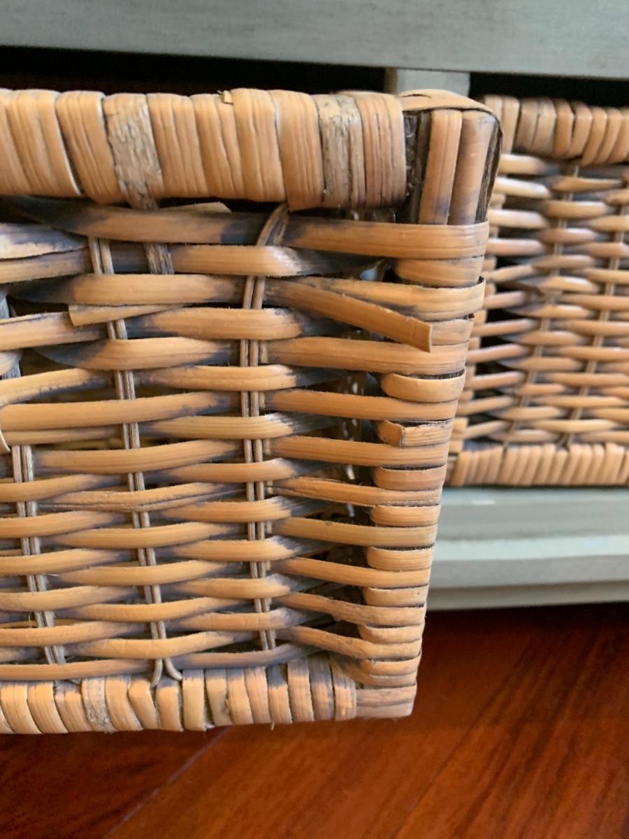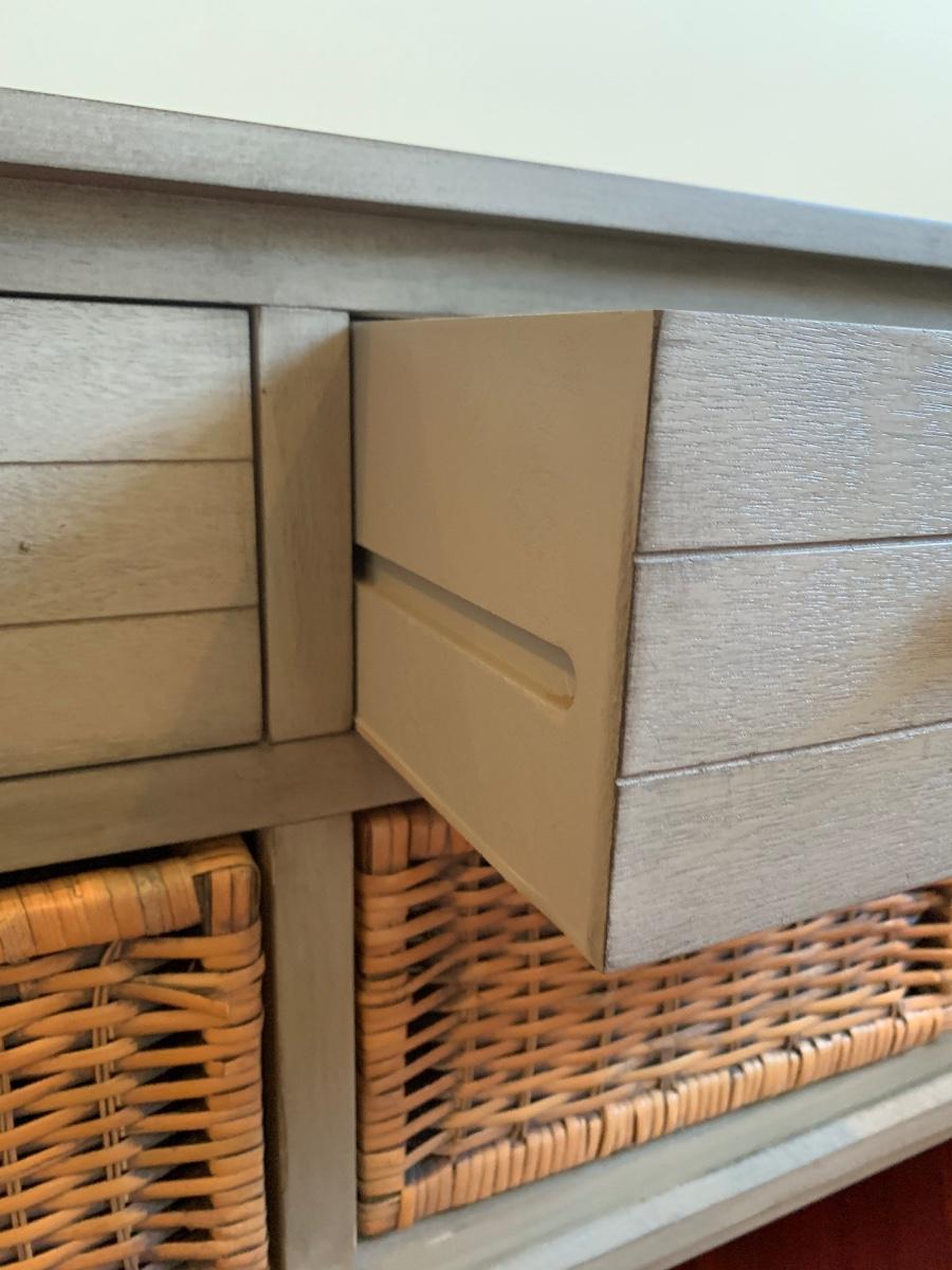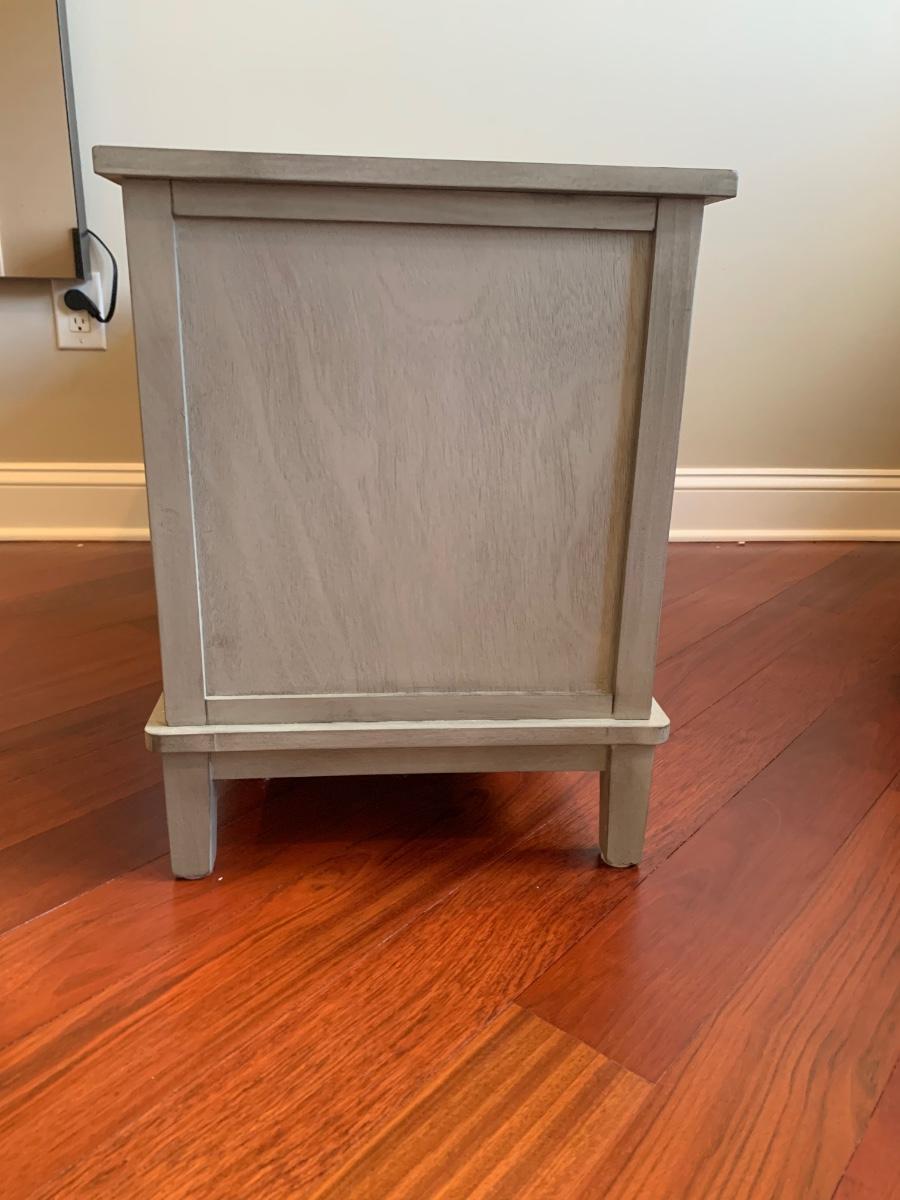 Gray storage bench in nice condition however baskets have wear (pictured) Measures 42x15x20