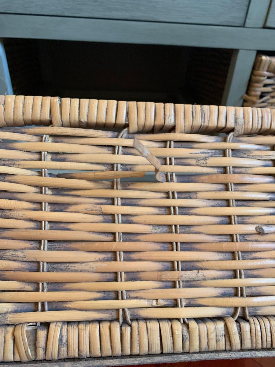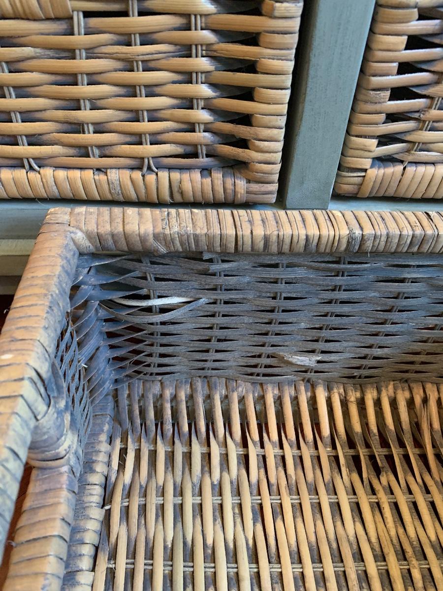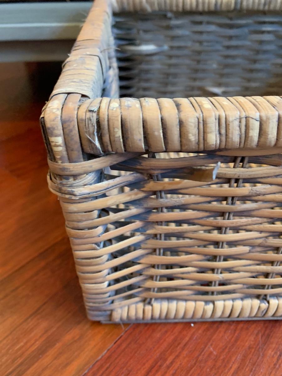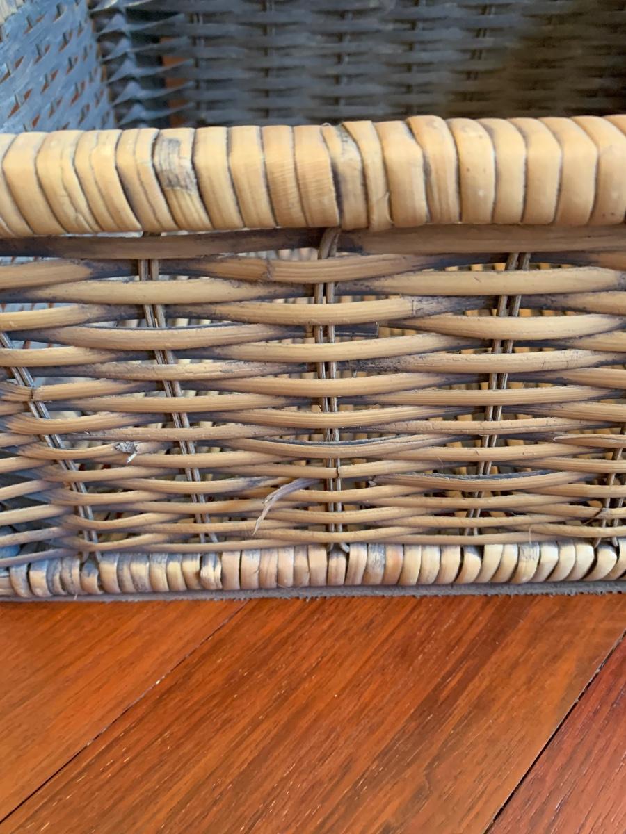Gray storage bench in nice condition however baskets have wear (pictured) Measures 42x15x20