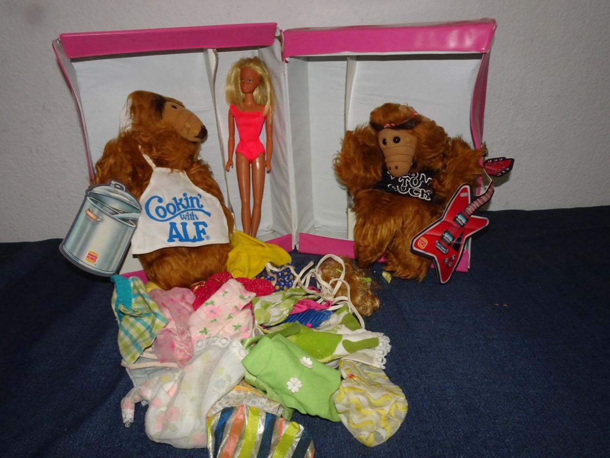 LOT 152. BARBIE WITH CARRYING CASE AND ALF HAND PUPPETS