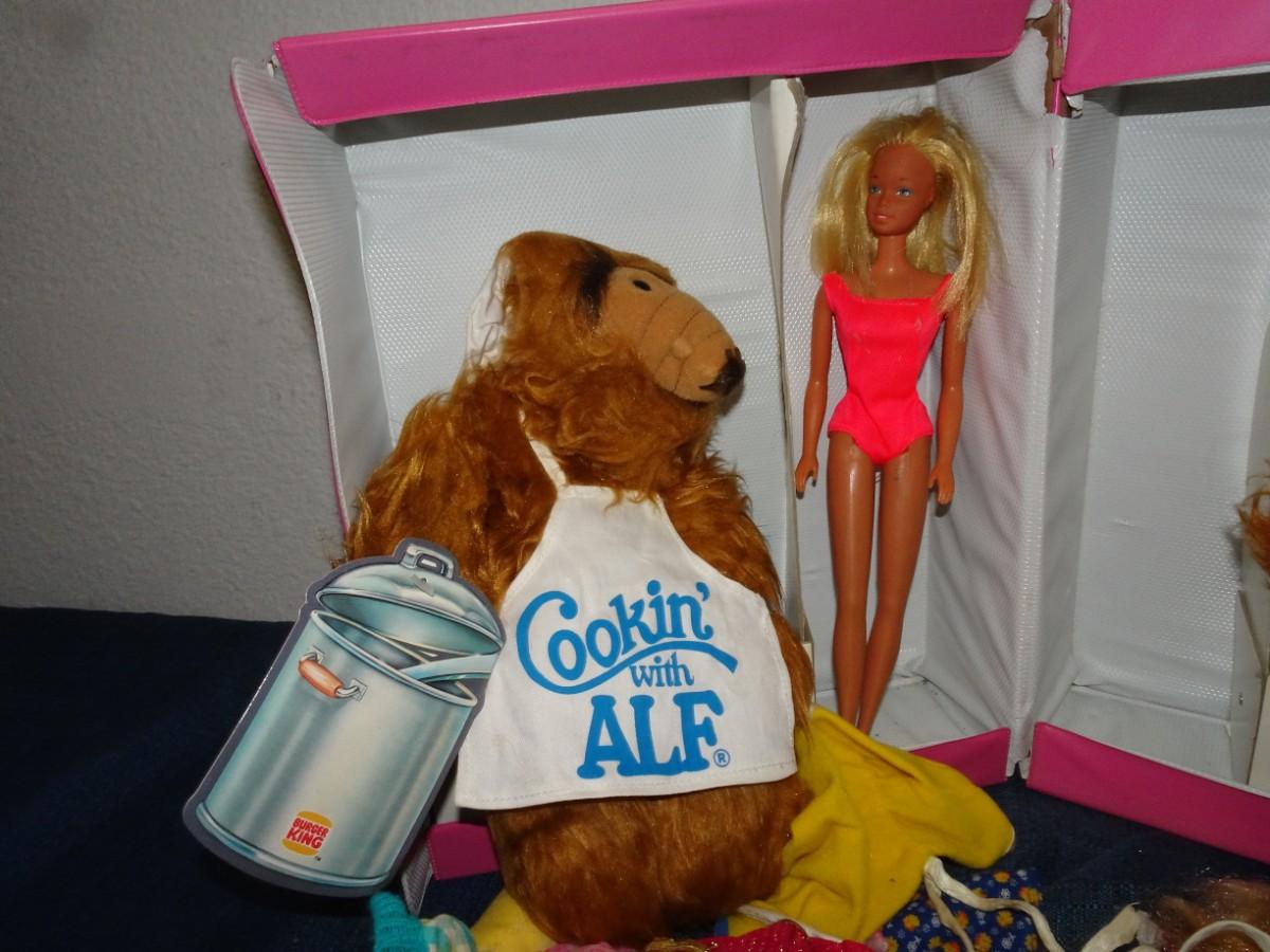 LOT 152. BARBIE  WITH CARRYING CASE AND ALF HAND PUPPETS