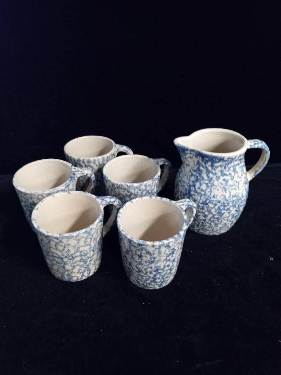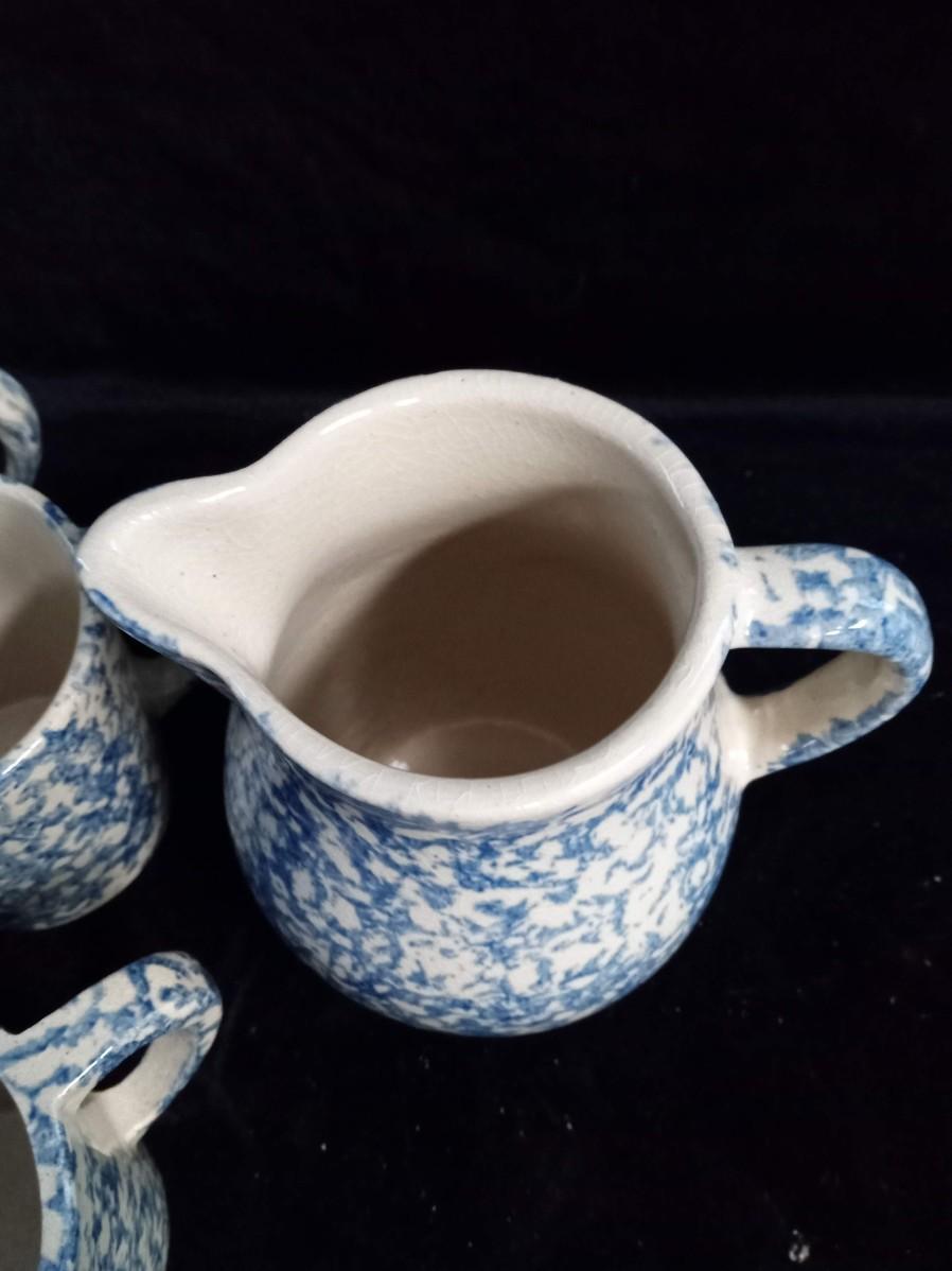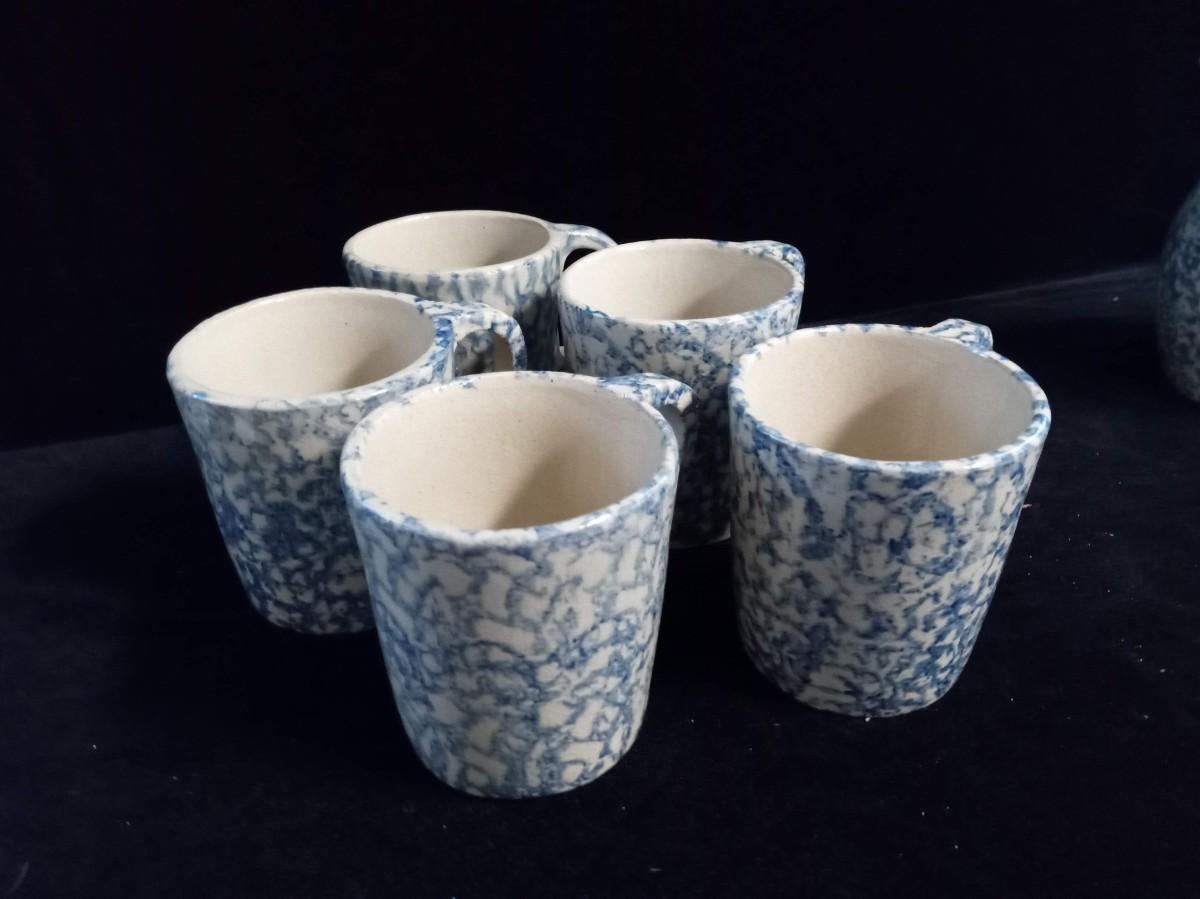 ROSEVILLE SPONGEWARE COFFEE MUGS AND SMALLER PITCHER