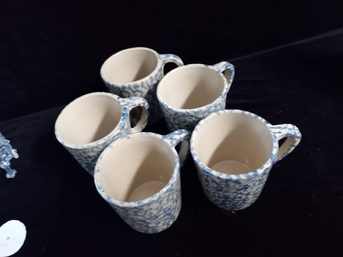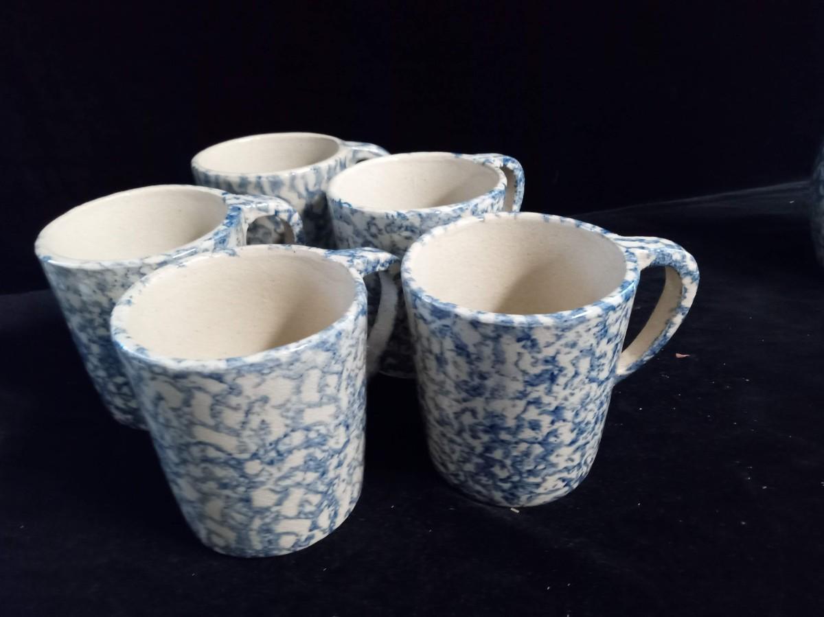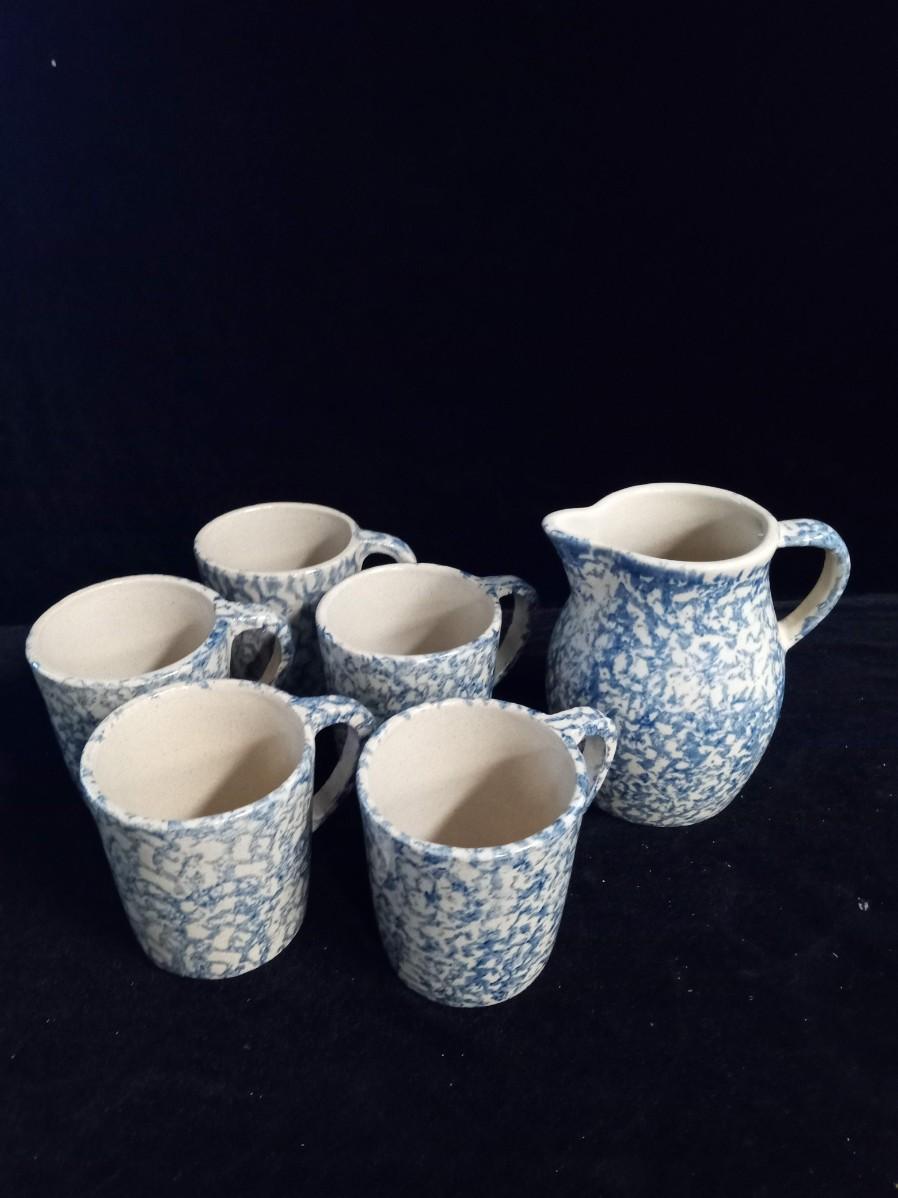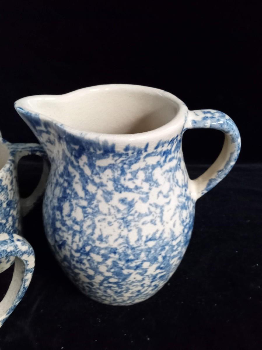 ROSEVILLE SPONGEWARE COFFEE MUGS AND SMALLER PITCHER