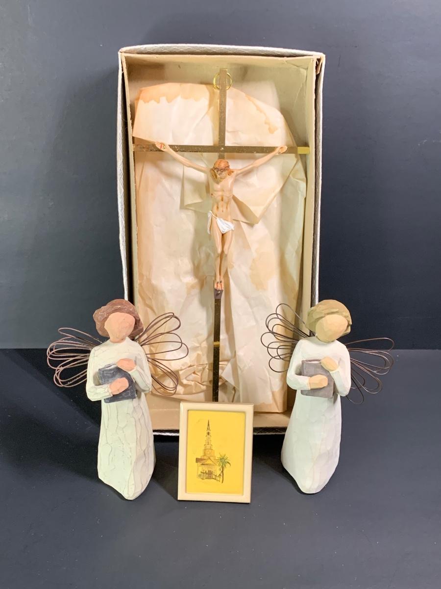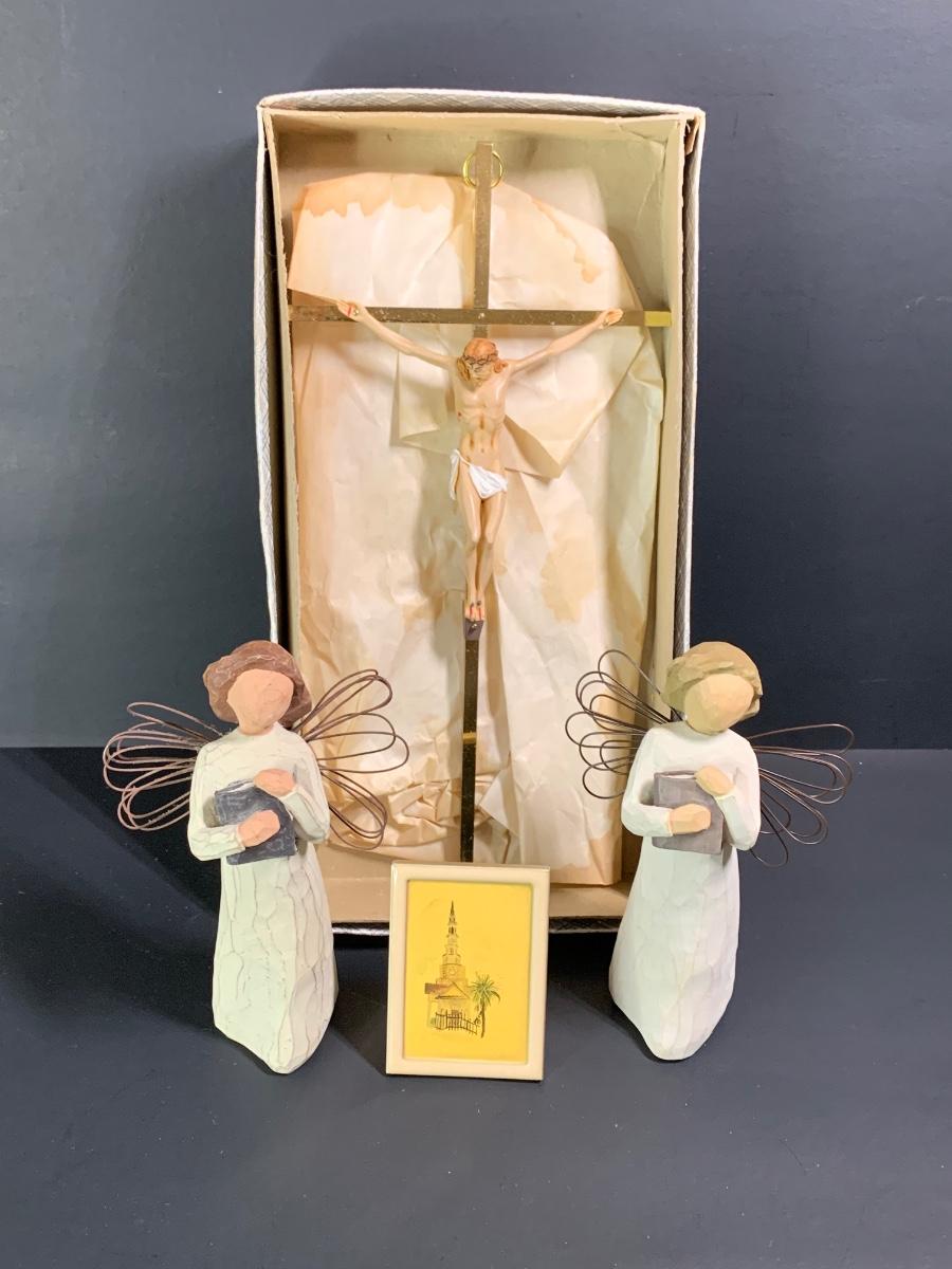 Lot 152: Willow Tree Angels, Crucifix and Mini Charleston, SC Artwork