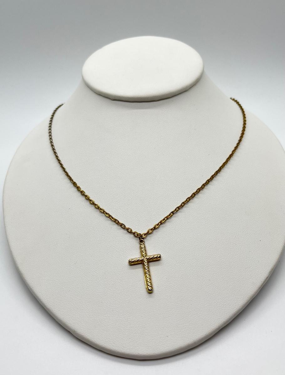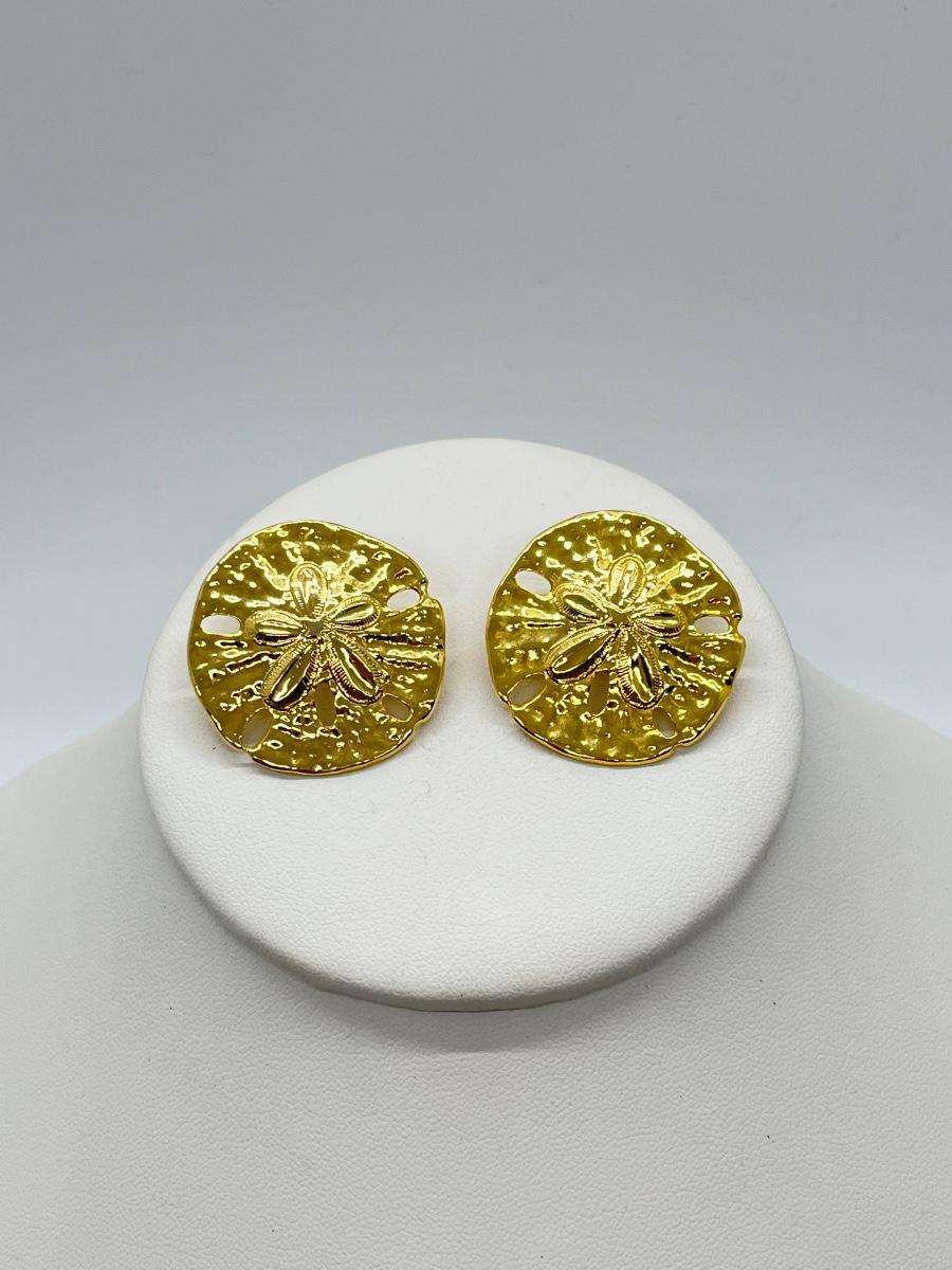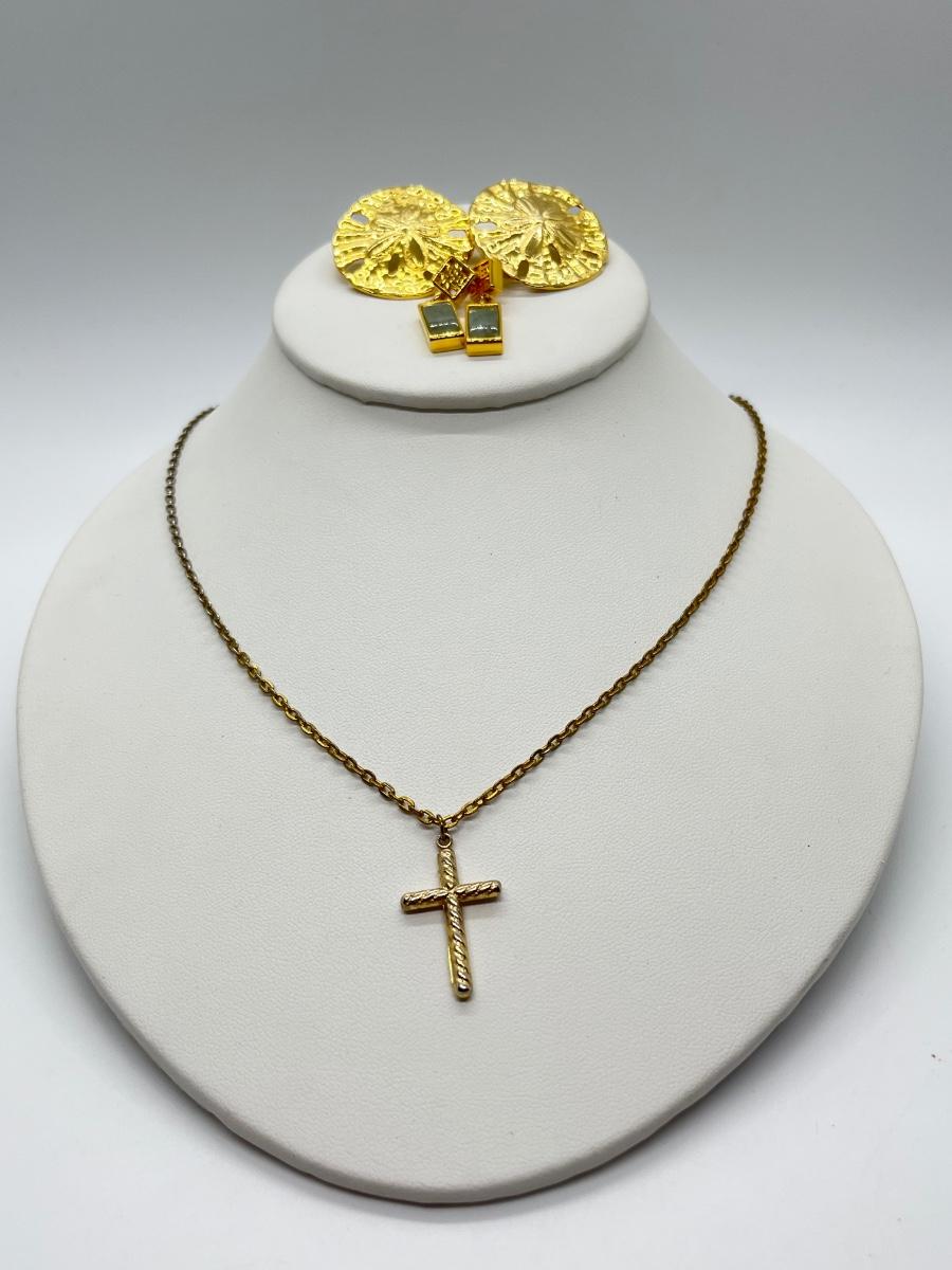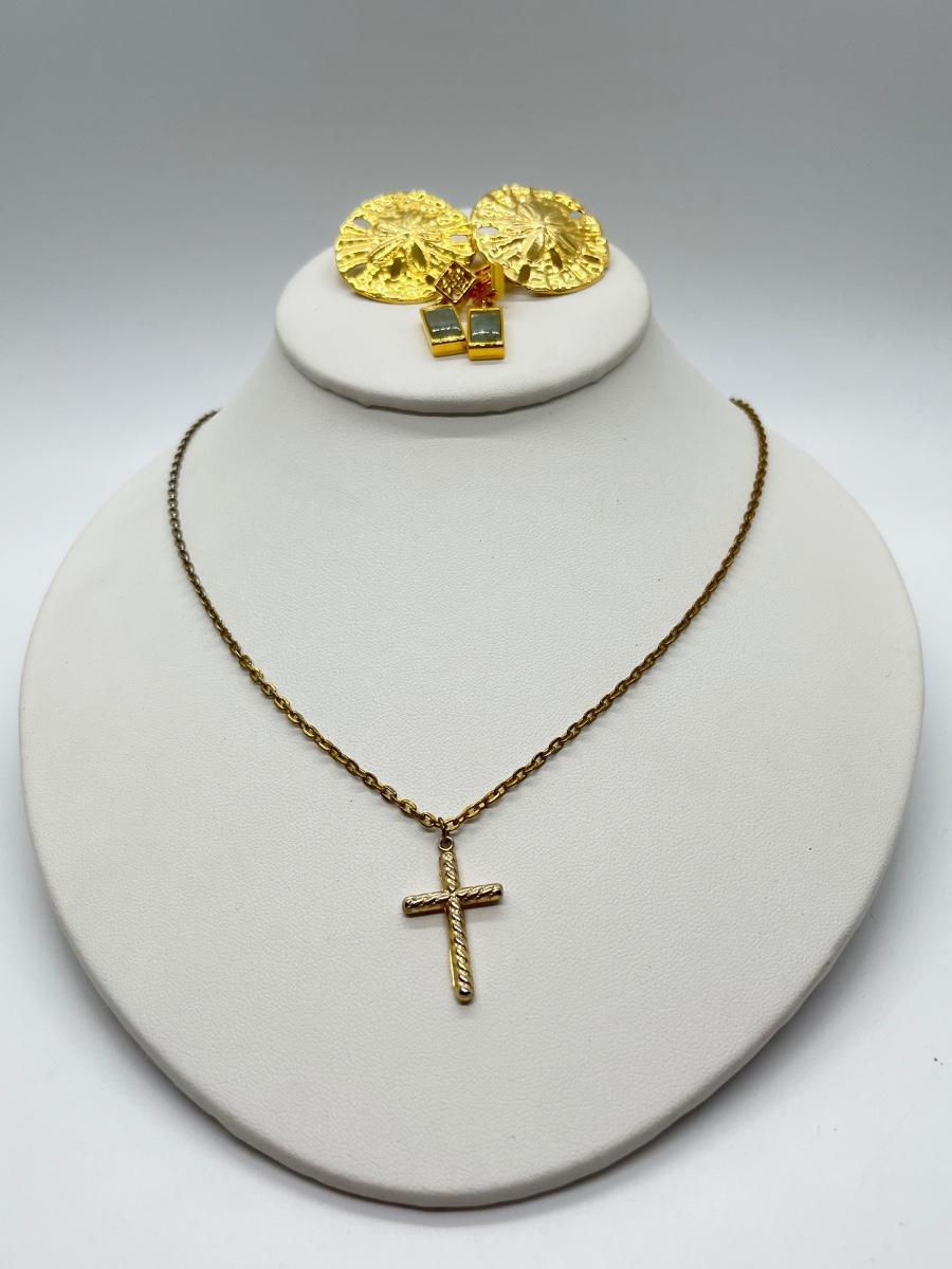 LOT 152: Goldtone 20" Chain w/ Cross + Faux Jade and Sand Dollar Goldtone Pierced Earrings