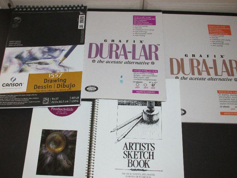 Collection of artist paper supplies for painting and sketching. All are used but have several sheets left in them.