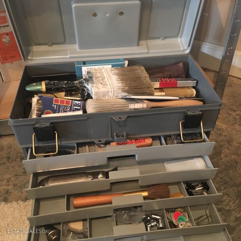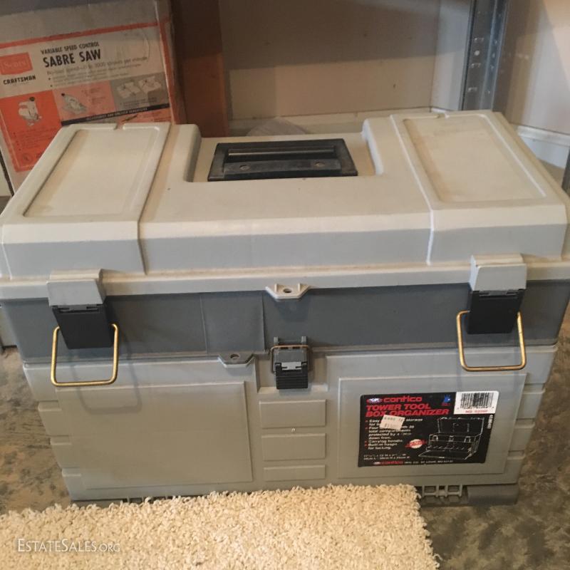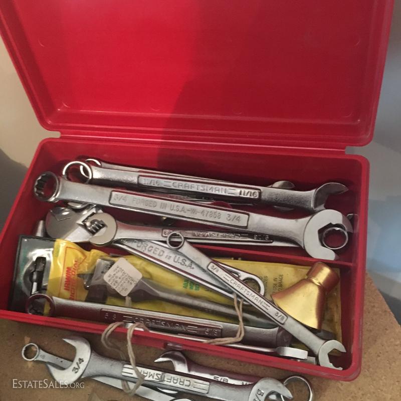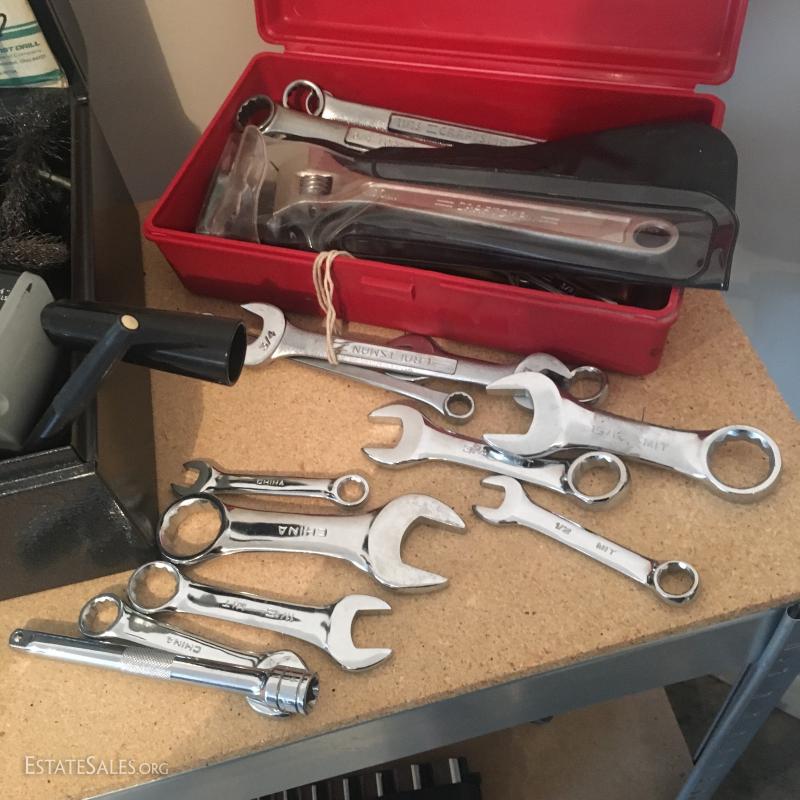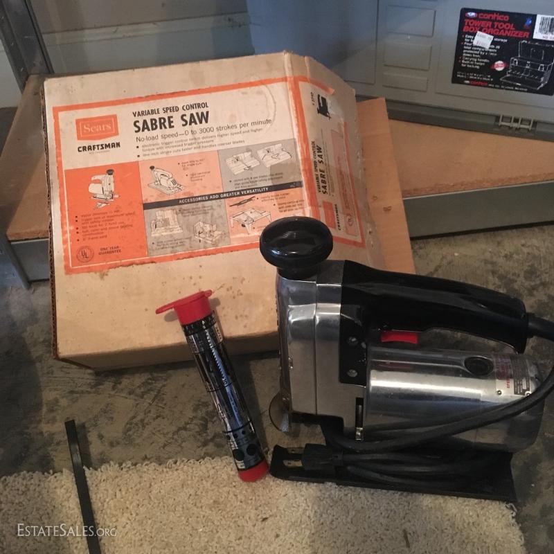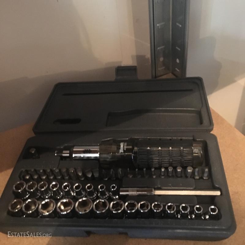 Wards Power-Kraft 3/8", 2 speed drill, Craftmans sockets and other assorted tools, electric staple gun, Bench top and more.