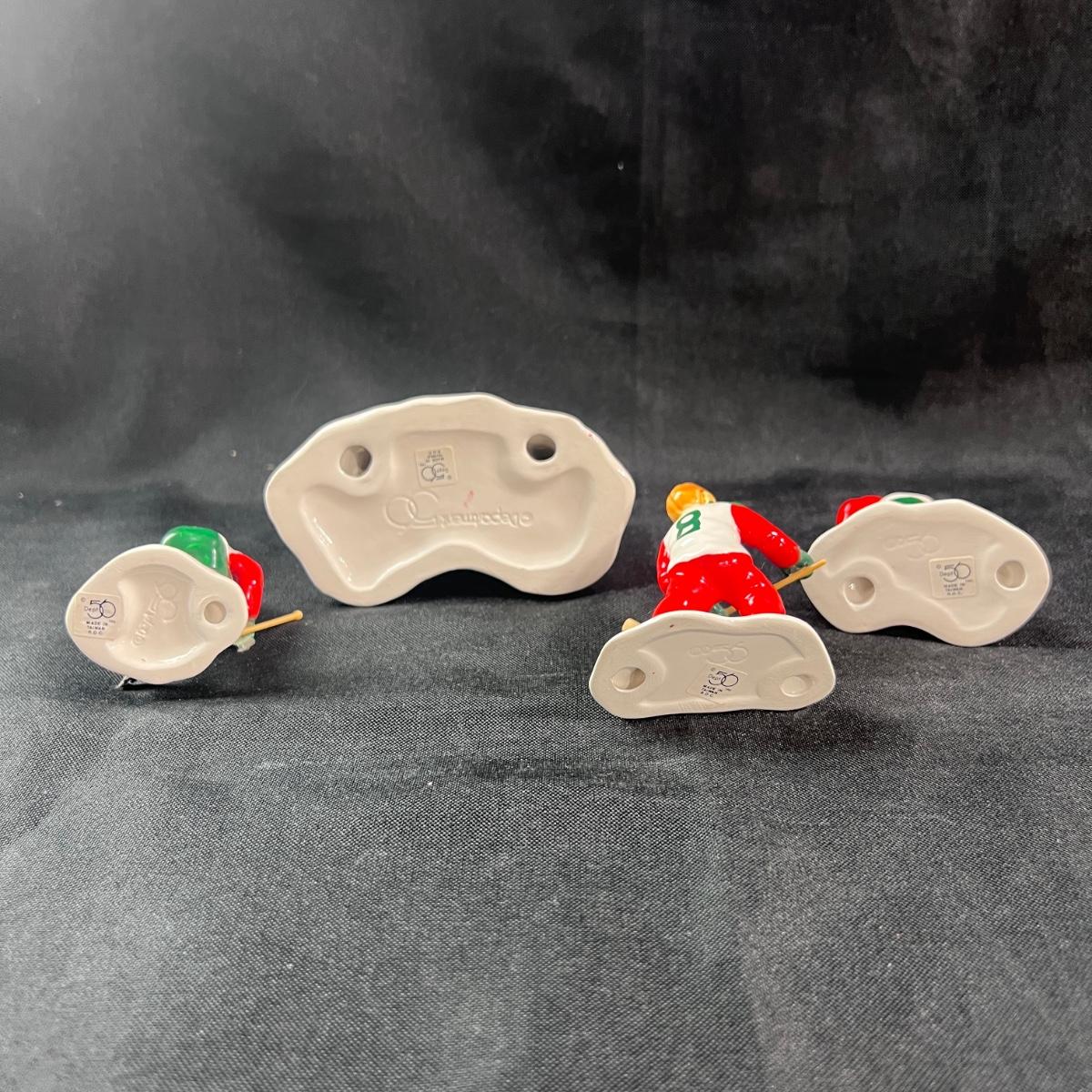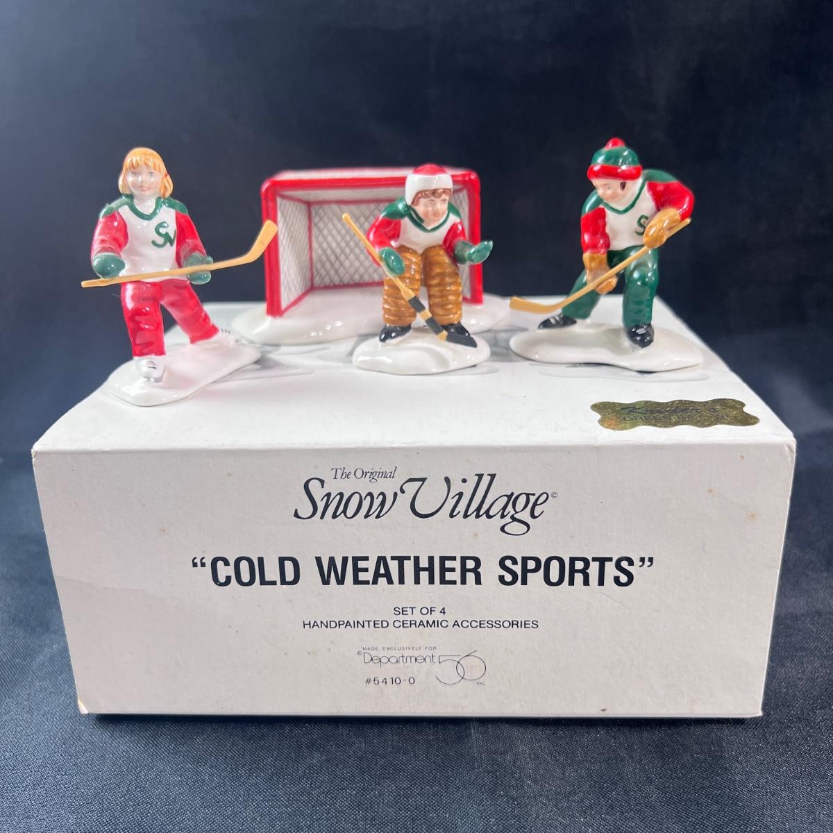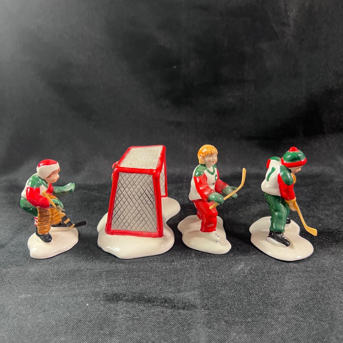 Department 56 Cold Weather Sports set of 4 figures. A note about the hockey sticks: they are attached after the glazing process, and therefore, the glue will eventually pull away from it. Any small Department 56 accessory like that can be fixed with a dot of super glue and a little ingenuity! Please see photos for details and condition. ::: Shipping is available on this lot. If you require shipping you must let us know at the close of the auction. We will coordinate with you after the item has been won. Shipping fees will include insurance up to or exceeding the value of all items being mailed. If you have any questions regarding this lot please contact the auctioneer either via this website, by direct email or by phone. PICK UP TIMES and other important information can be found in the TERMS and DESCRIPTION of the auction. Please take a look for pertinent information. Thanks! Any condition statement is given as a courtesy to a client, is an opinion, and should not be treated as a statement of fact. Reference to condition written, oral or within a condition report shall not be regarded as a full account of condition and may not include all defects, alterations, or restorations. Absence of a condition report does not imply a lot is flawless or lacking imperfections or damage. Katherine’s Auction & Appraisal Service shall have no responsibility for any error or omission. Returns shall not be accepted on the basis of condition.