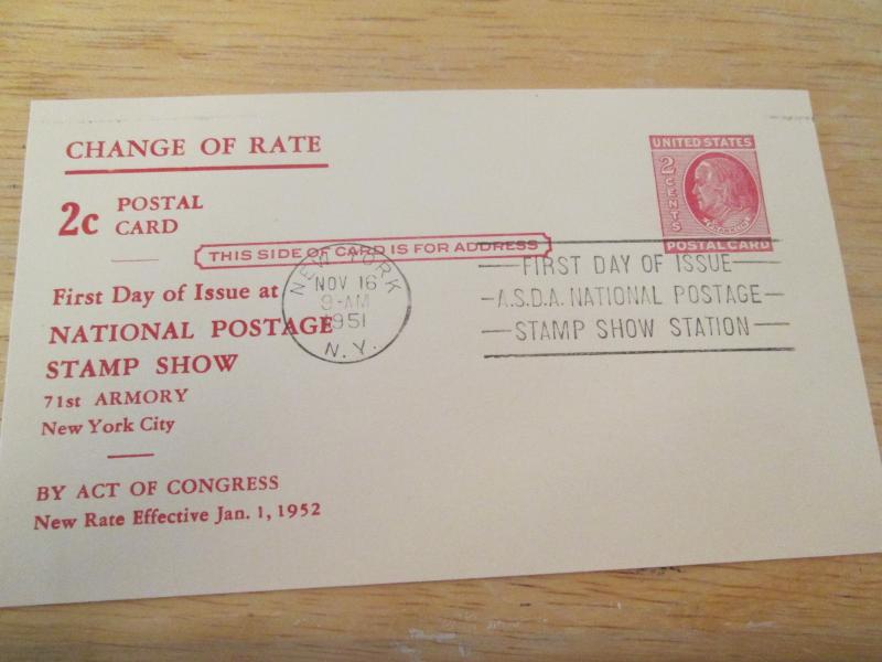 Lot # 152 - First Day Issues, Change of Rate, Library Size Postal Card