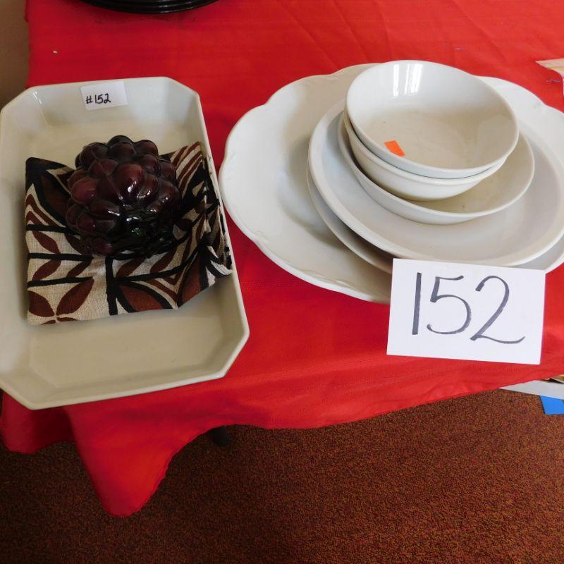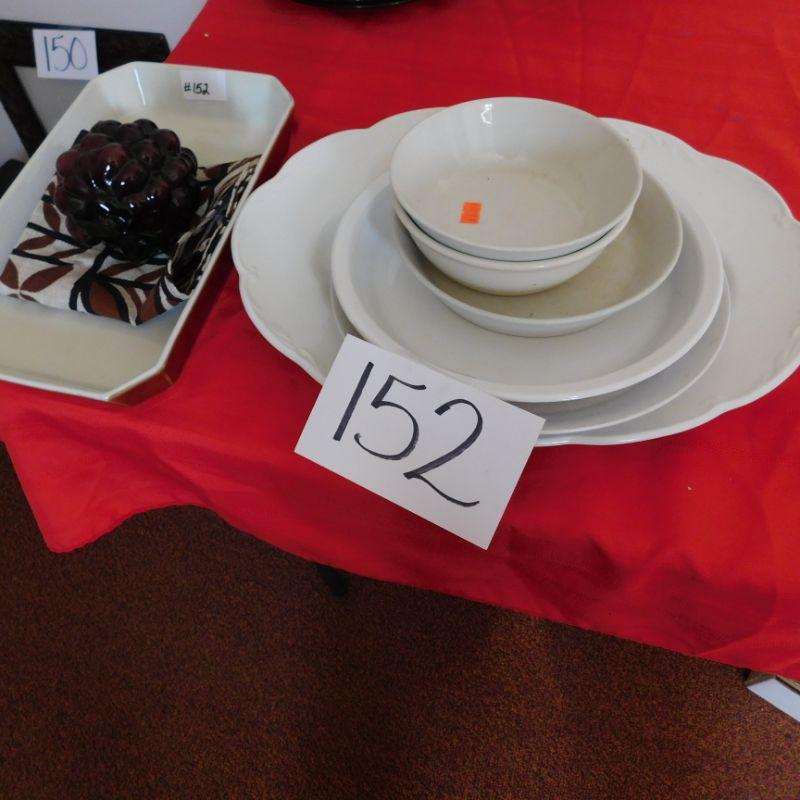 lot 152 Grouping of large iron stone platter +4 white plates/bowls