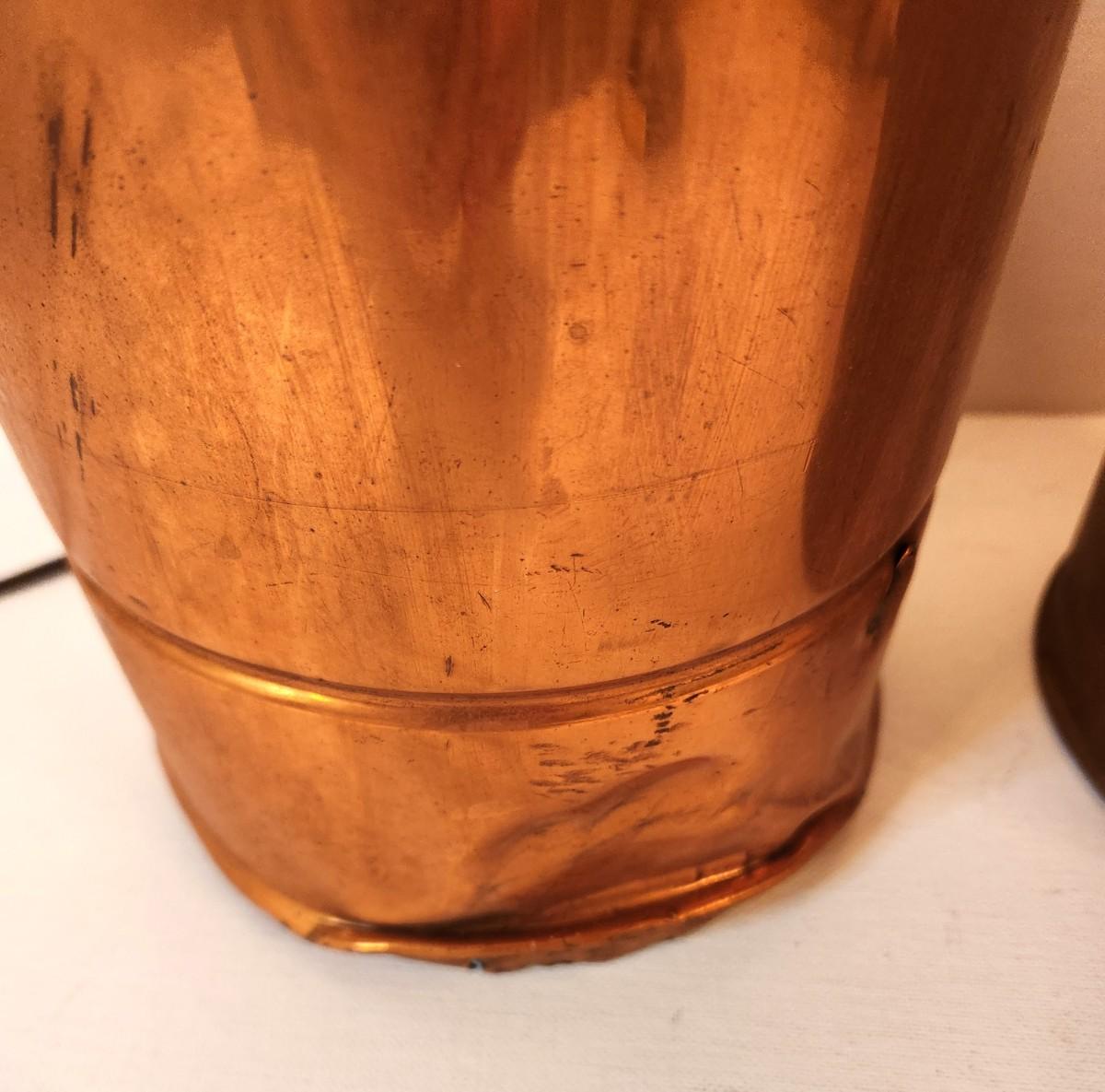 Lot of 2 antique fire extinguishers converted into table lamps Each about 30" tall - no shades. One has a boo-boo at the bottom (see photo).