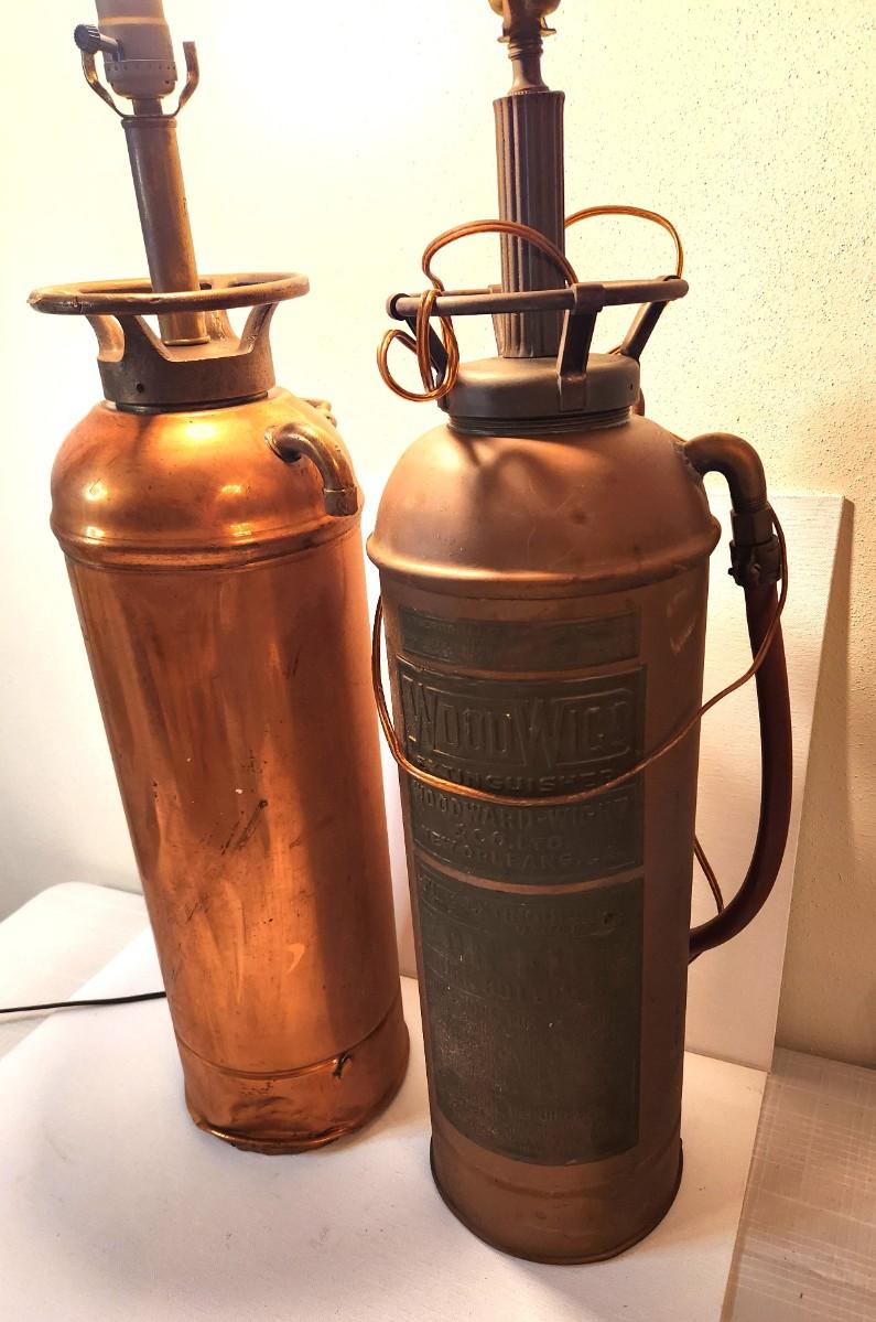 Lot #152 Lot of 2 Antique Fire Extinguishers Converted into Lamps