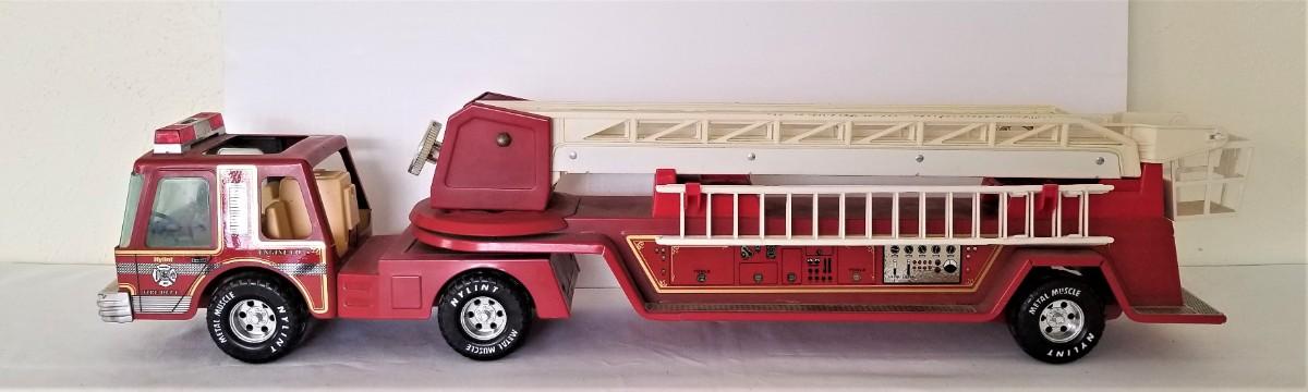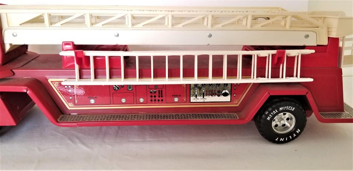 Metal body - NYLINT Engine #5 Hook and Ladder Truck - both ladders intact. Good condition - 31" long.