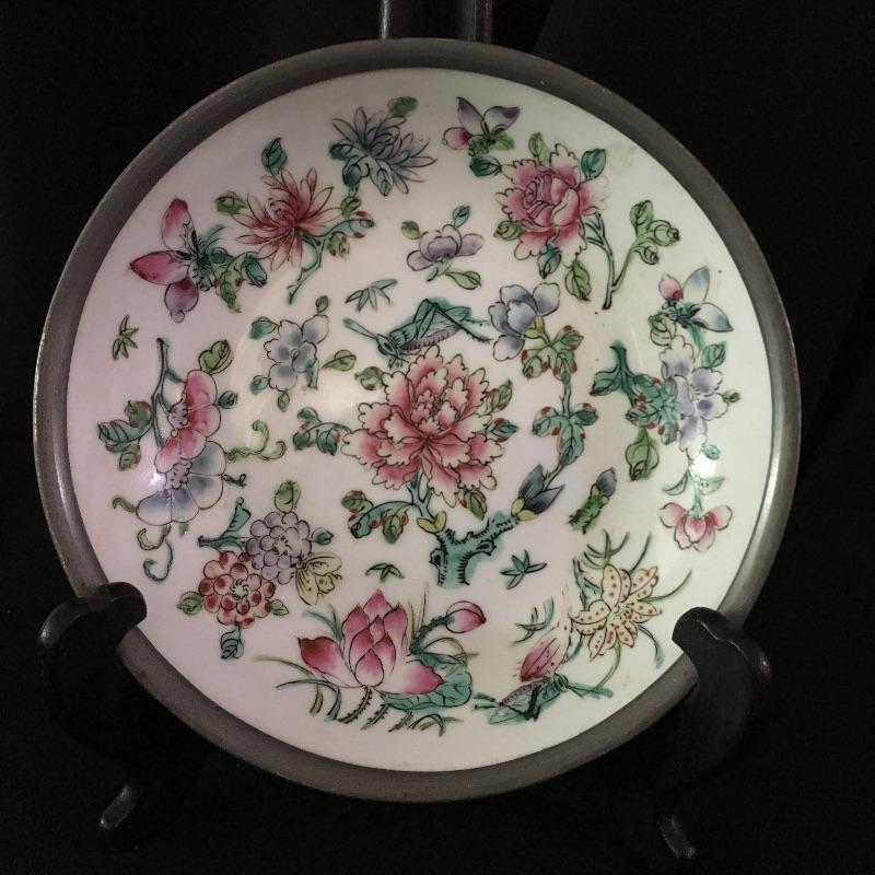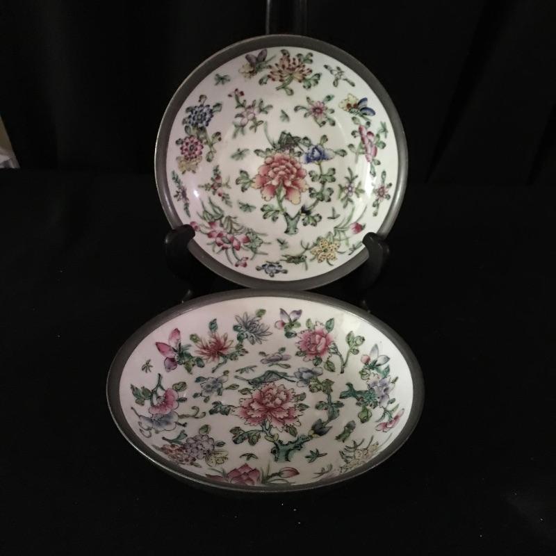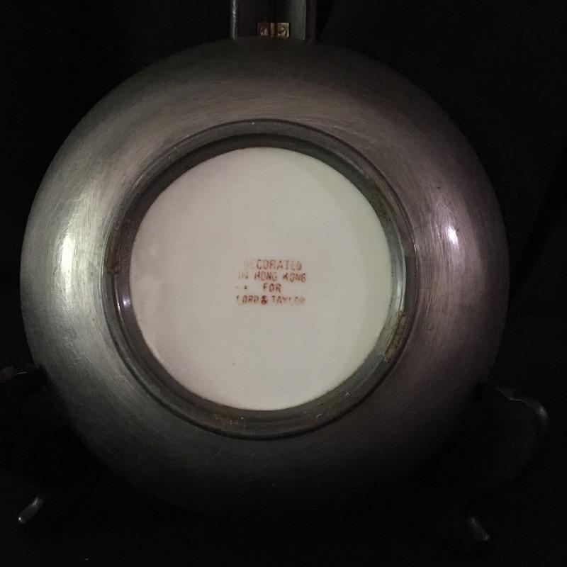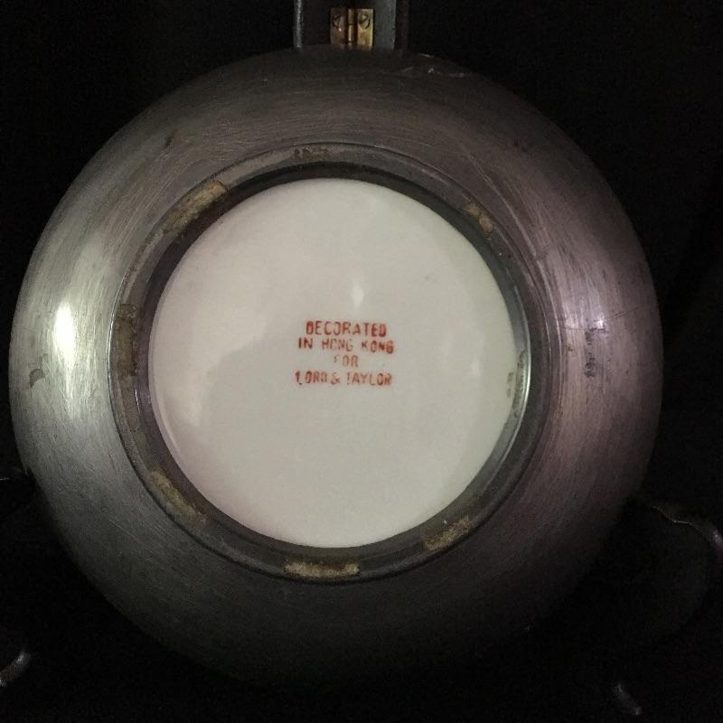 These gorgeous vintage Japanese porcelain bowls are encased in metal with stunning with floral design. Great to display or as centerpiece bowls. Made in Hong Kong in the 70's for Lord & Taylor. Bowls measure 8”D x 1.75” tall.