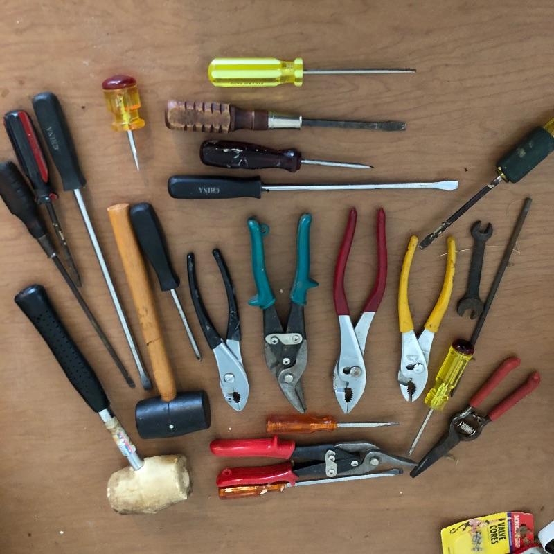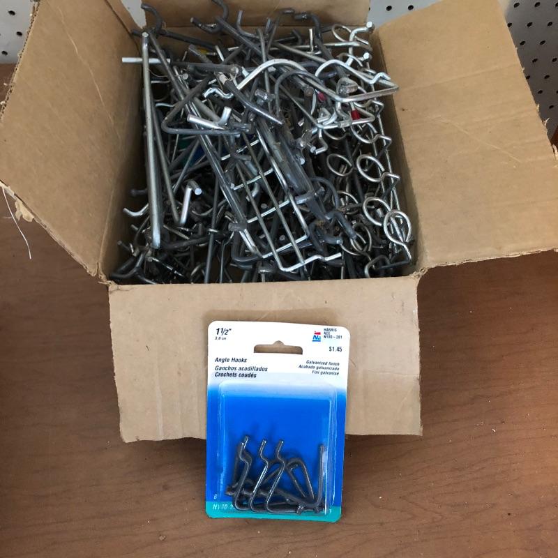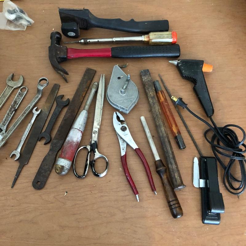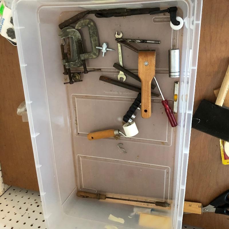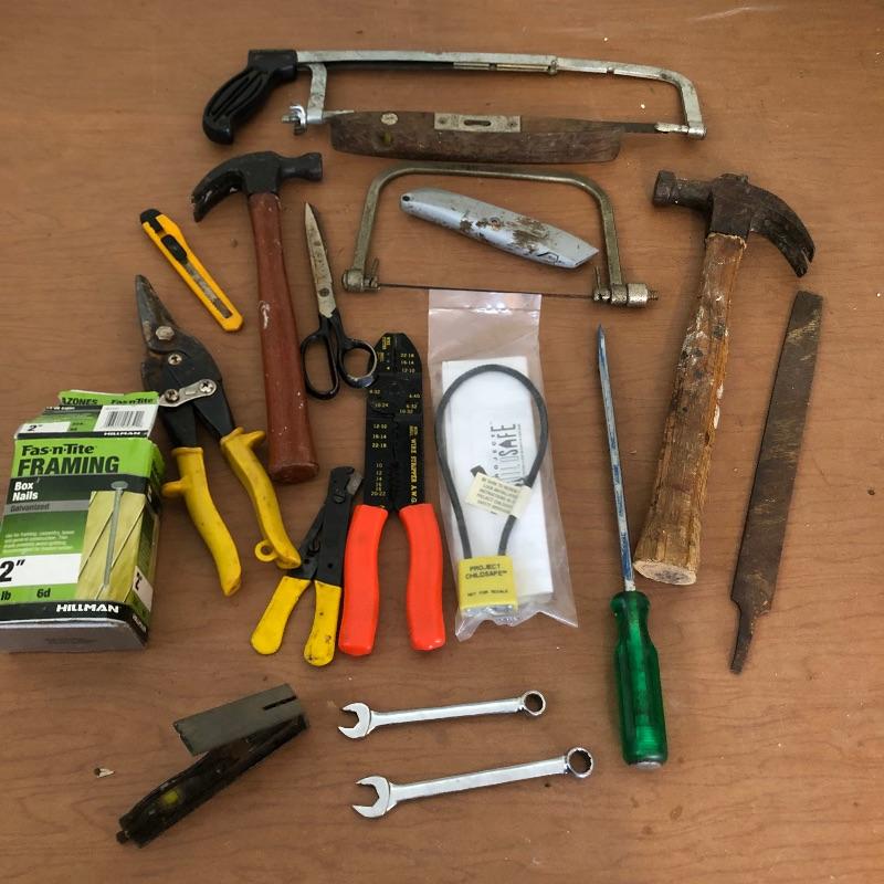 This vast lot contains a great mix of tools and household maintenance essentials. See images for everything that is included, but to name a few, a Craftsman sander and a bunch of extra sandpaper (turned on when tested), a box full of pegboard hooks and a black metal tool holder for pegboards that measures 3’ wide by 7” tall and much more.
