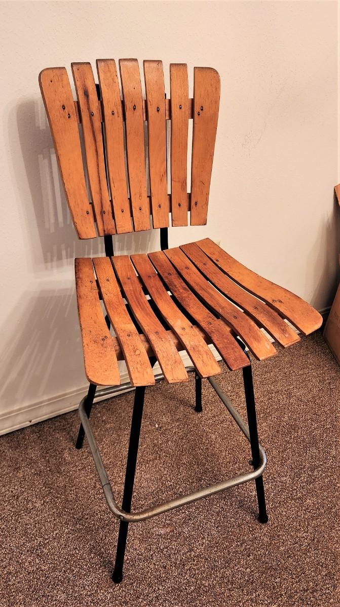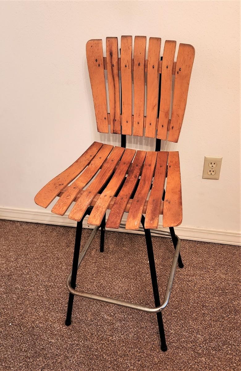 Vintage bar stool (single) with metal base. 17" across, 37" tall, 14" deep. Vintage condition.