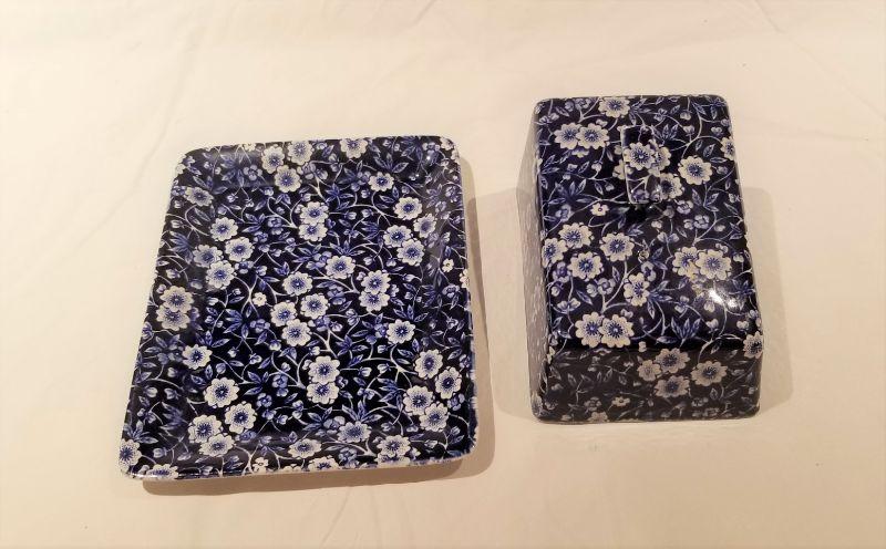 Vintage Cheese Holder - English, 1940's. Excellent condition. Blue/White. Measures 7 1/4"x 5 3/4". 3.5 inches tall.