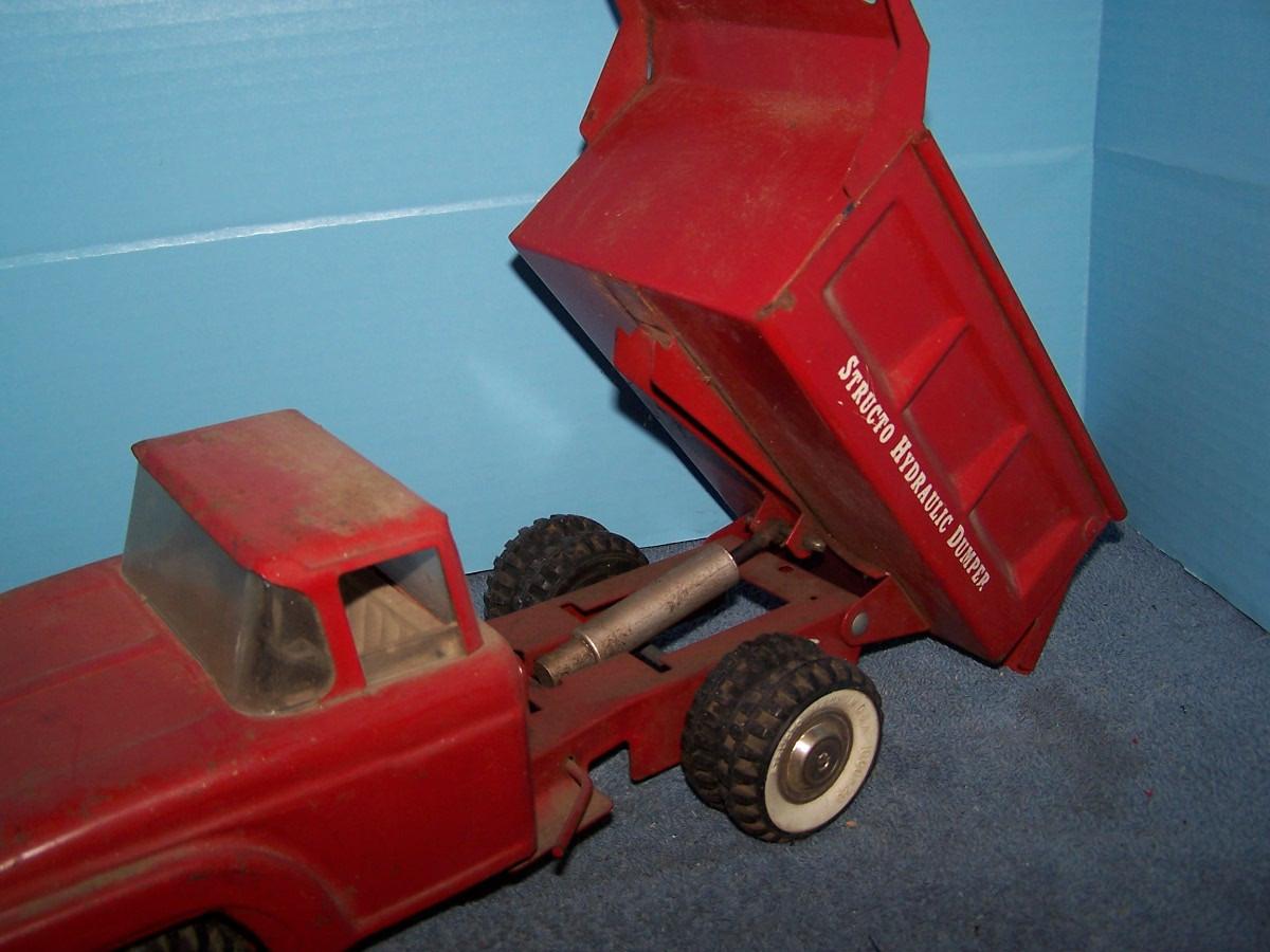 THIS IS A GREAT VINTAGE STRUCTO TRUCK! 13 1/2'' LONG.. HYDRAULIC WORKS.. ALL TOYS HAVE BEEN PLAYED PLAYED WITH..
