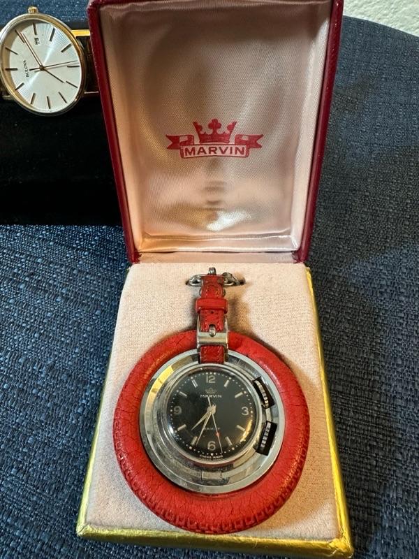 watches one Marvin pocket watch one Bulova men’s wrist watch