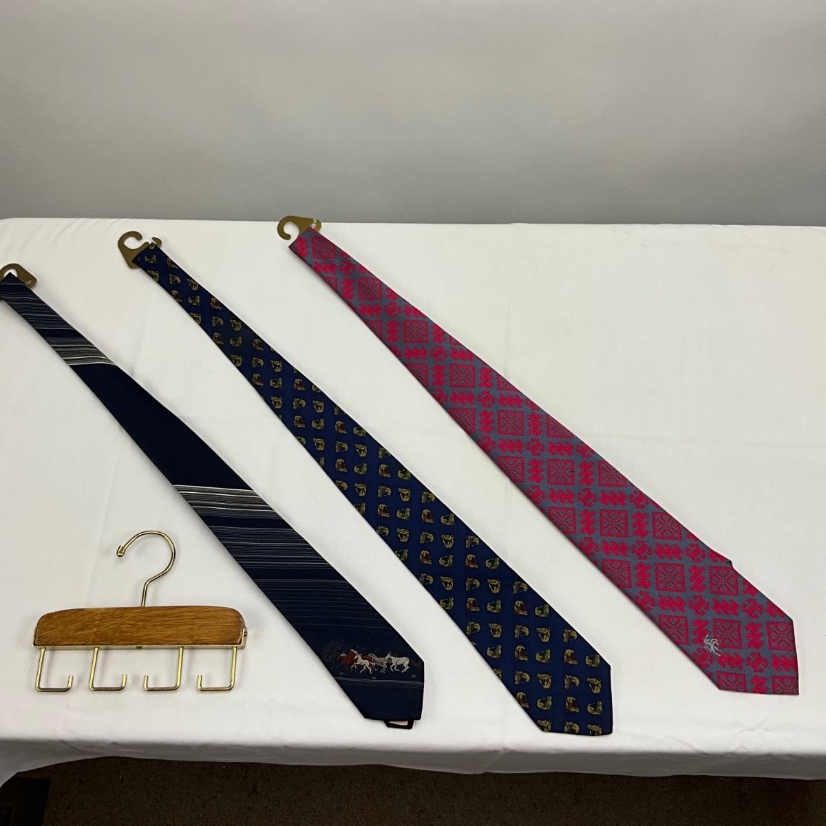 Lot 1525 Horse Themed Tie Lot ( 3 ) & Hanger