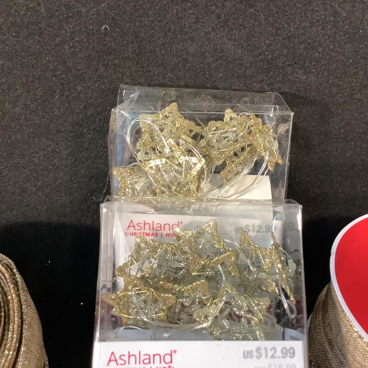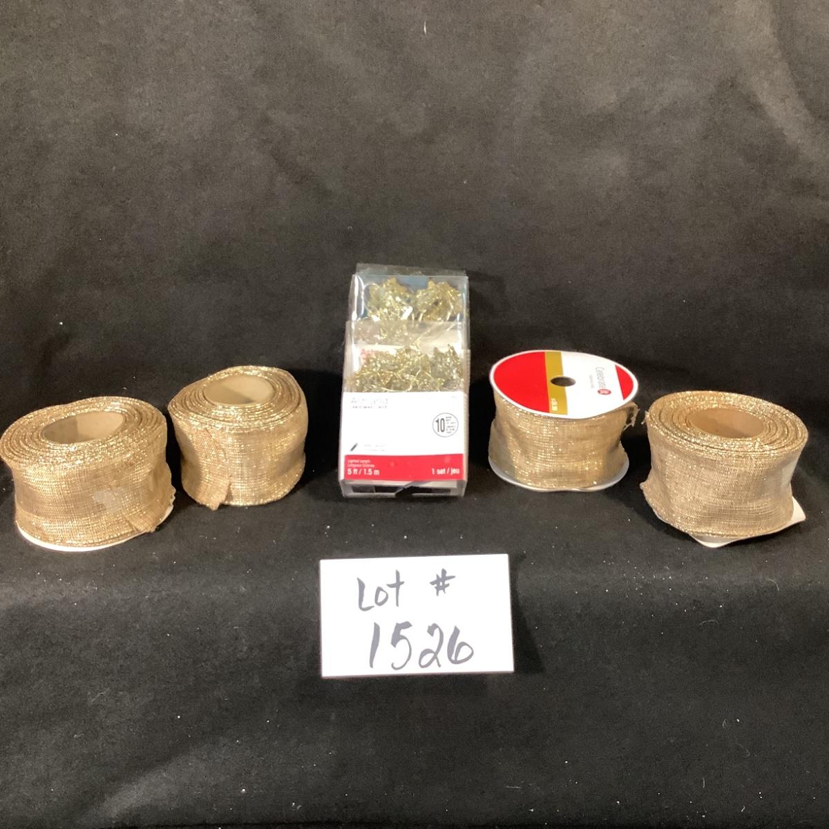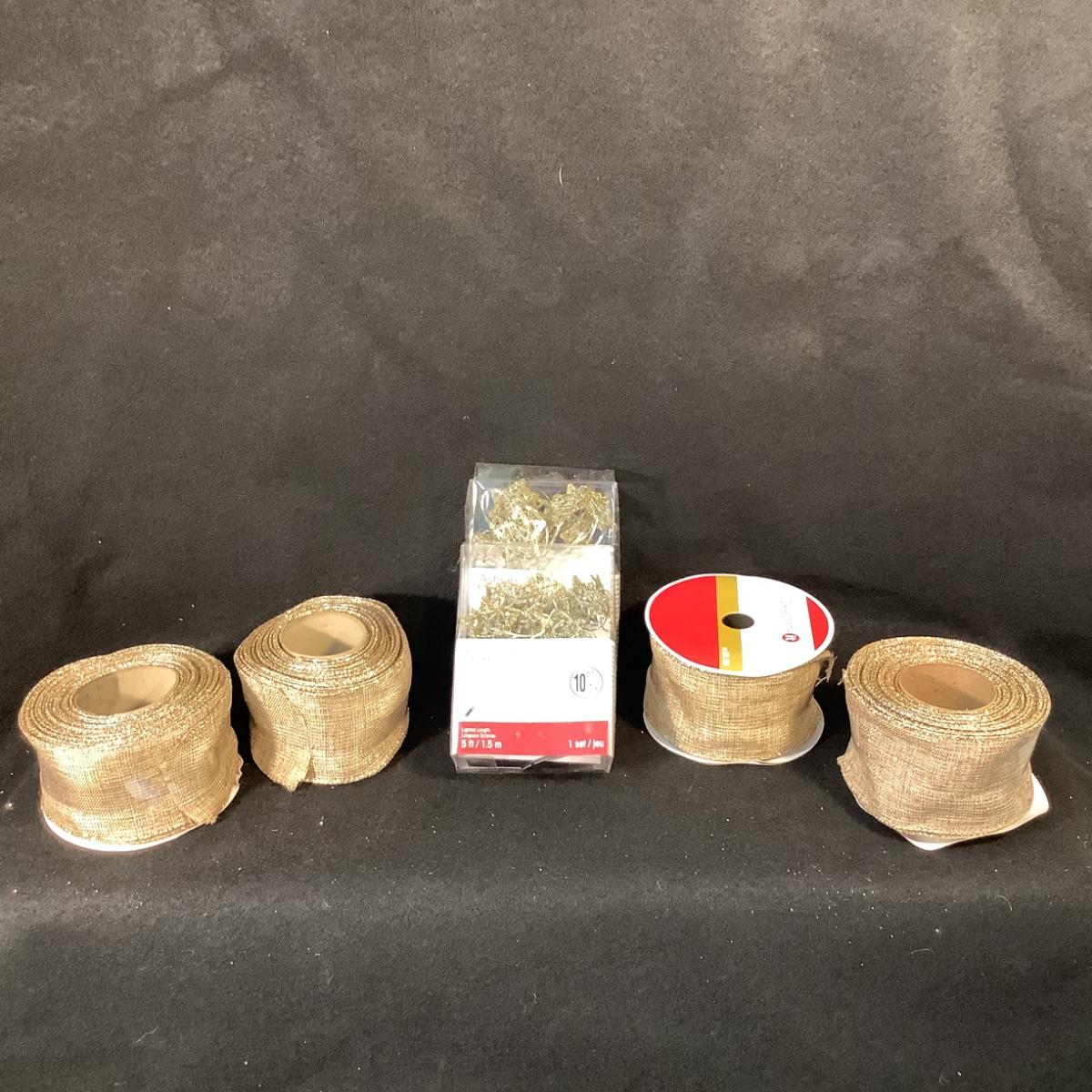 Lot 1526. Lot of Four Rolls Wired Gold Ribbon & Two Packages LED Star Light String