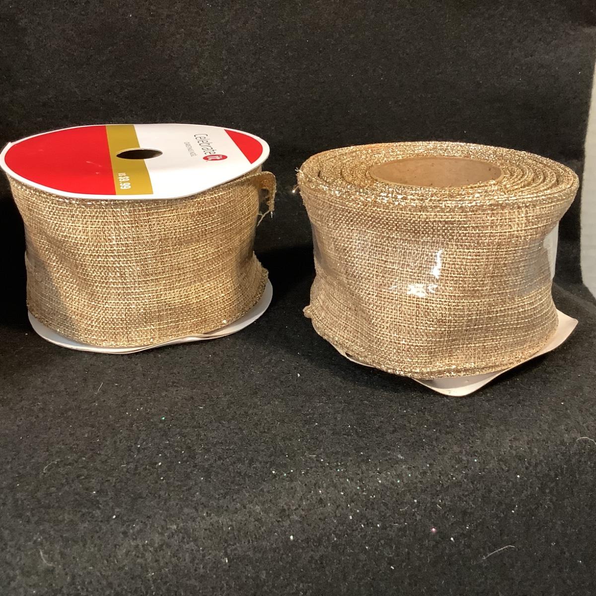 Four 2.5” Wide x 25’ Long (approximately) Rolls Wired Gold Ribbon