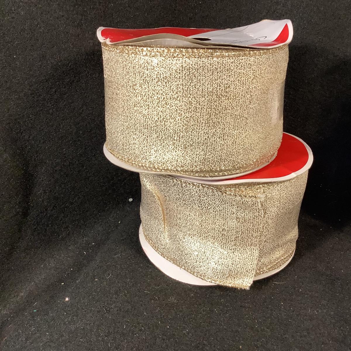 Four 2.5” Wide x 25’ ( approximately) Rolls Wired Gold/White Ribbon