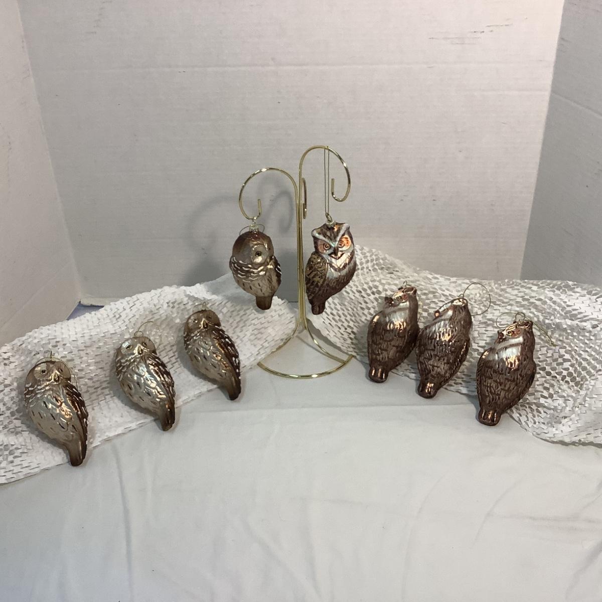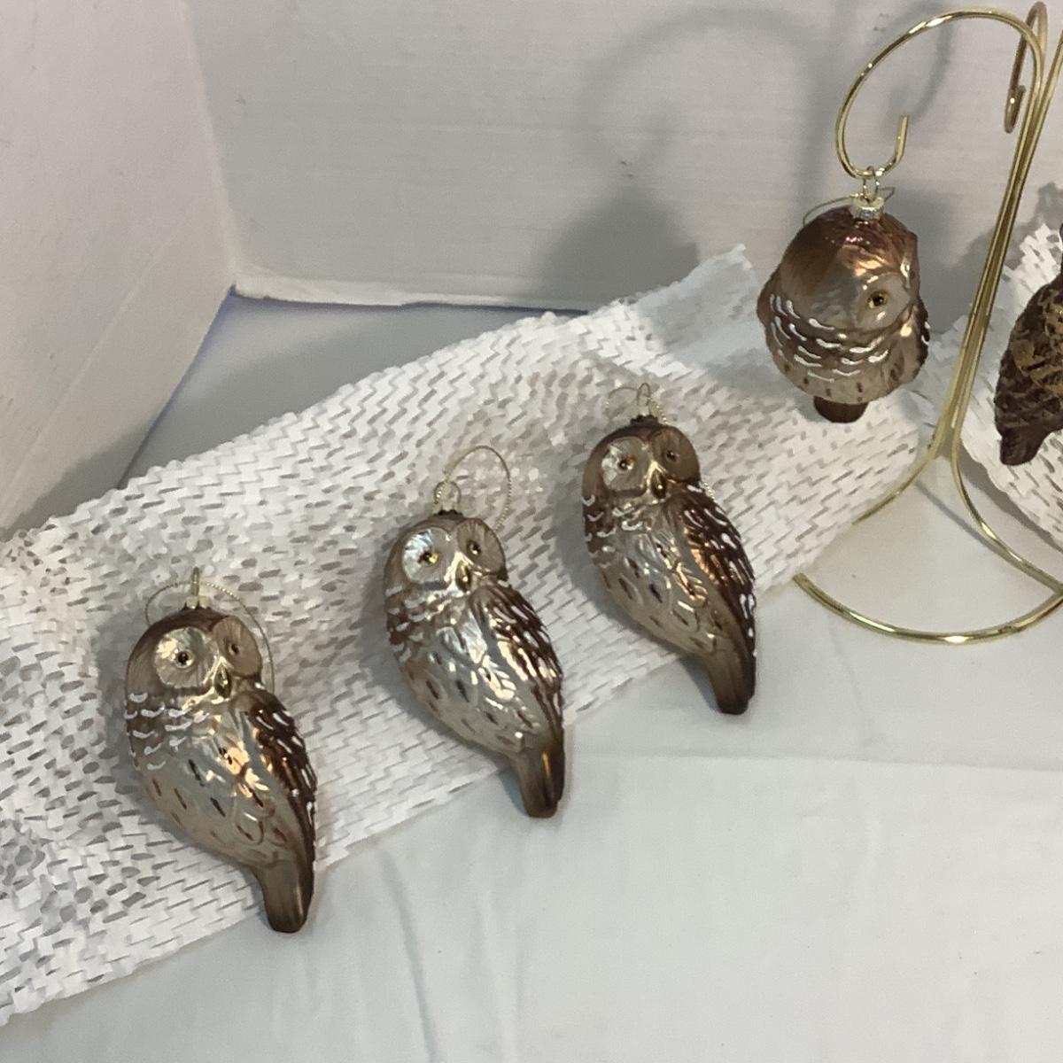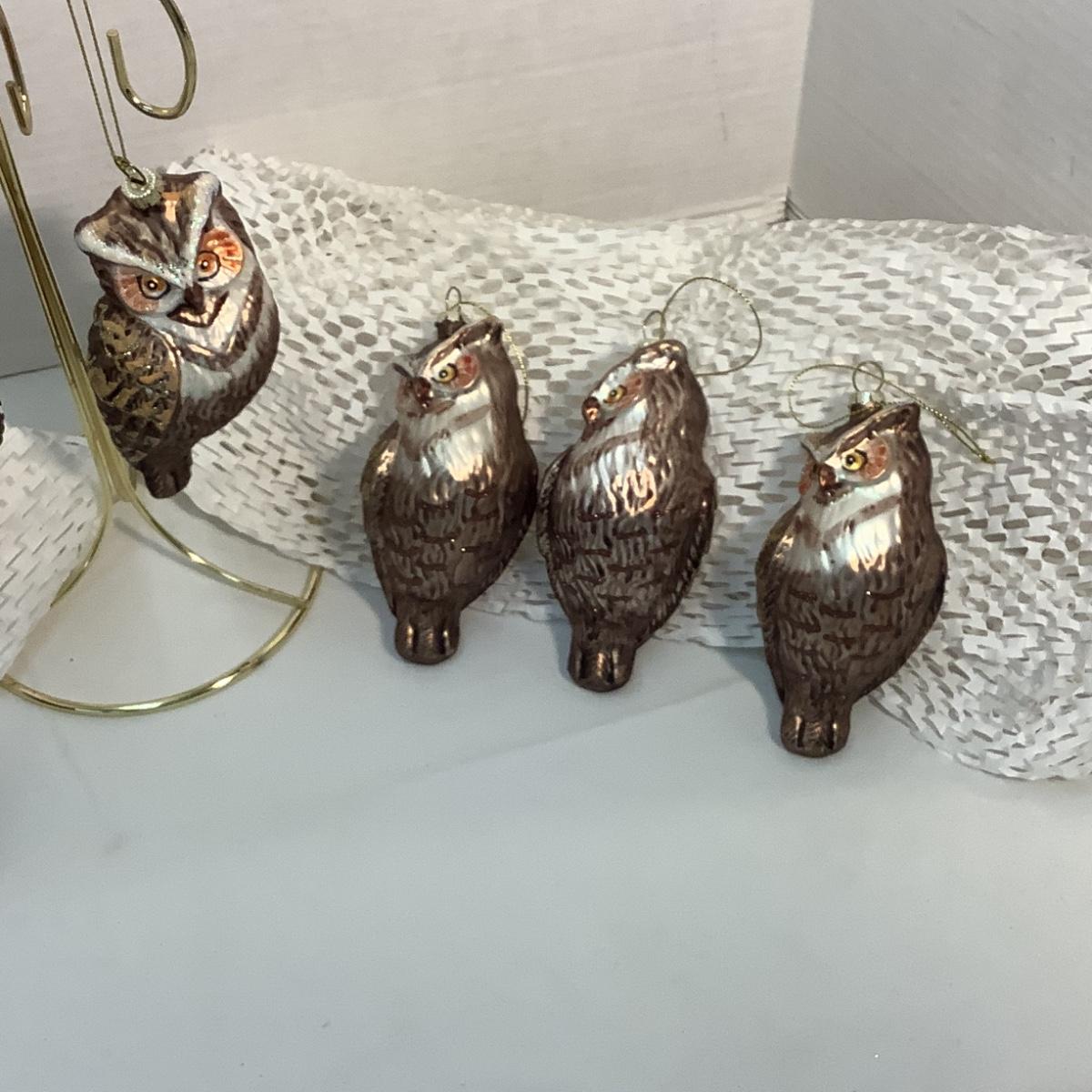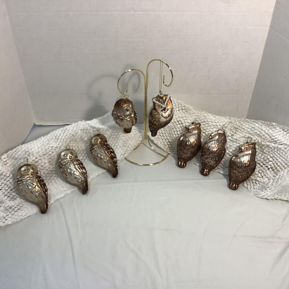 Lot 1529 Vintage Glass Owl Ornament ( 4+4, 8 total )