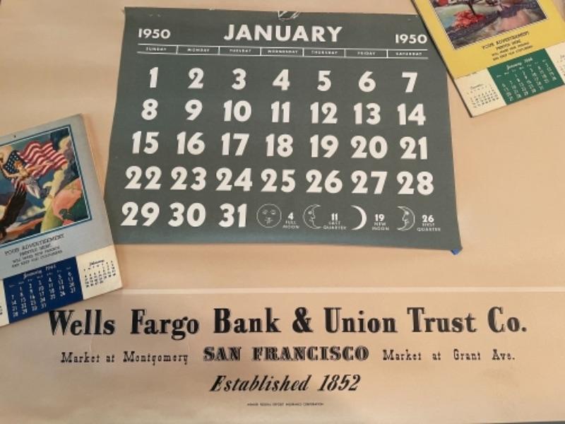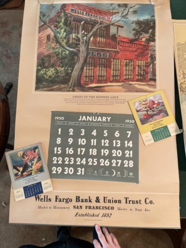 Lot 152DR. Vintage advertising calendars“”two Wells Fargo 1950, small calendars 1944, 1945, 1946 and 1947--$75
