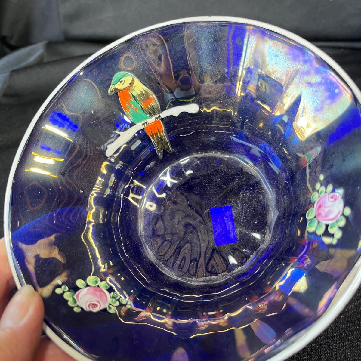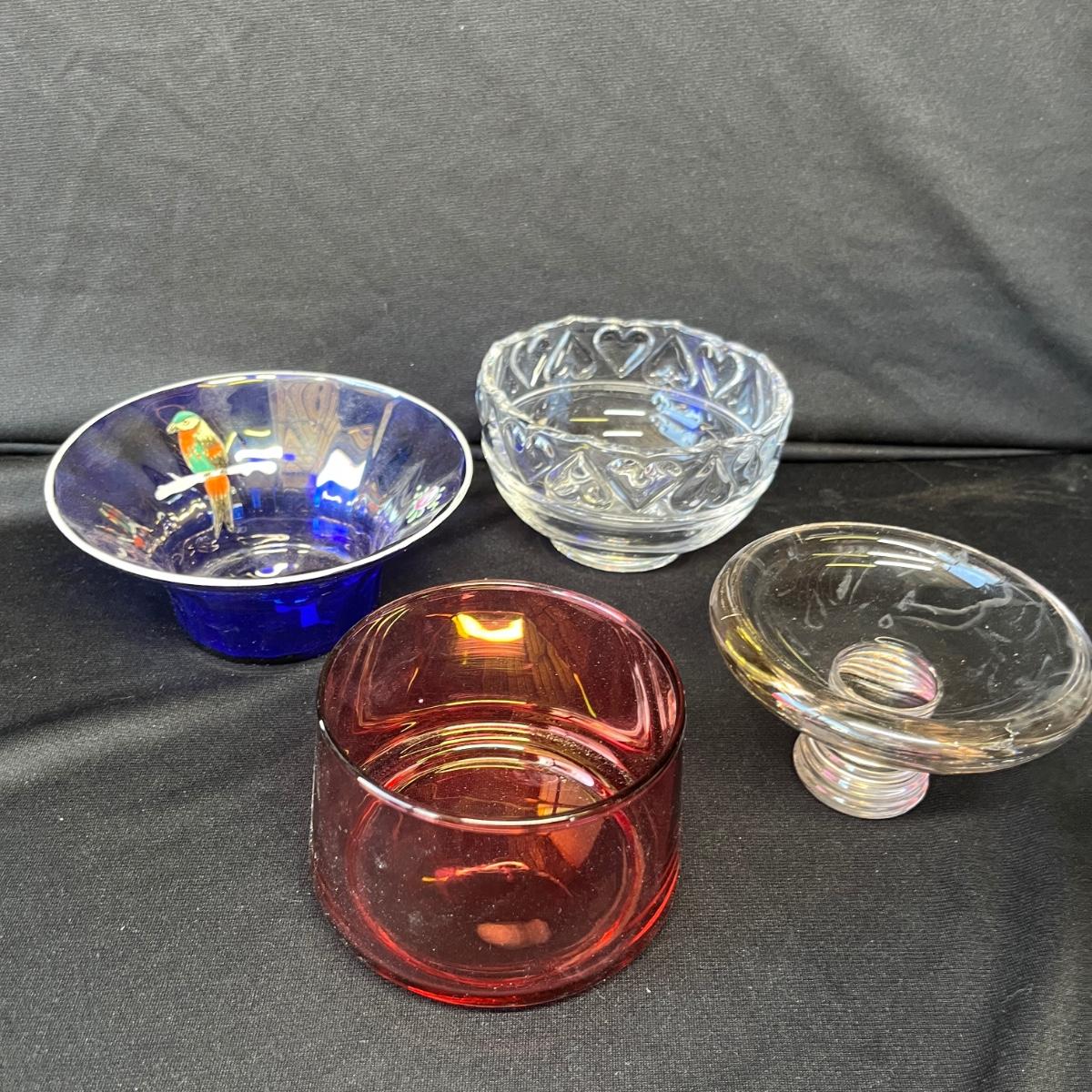 The hearts bowl is Tiffany. The Parrot is Czech! No damage.