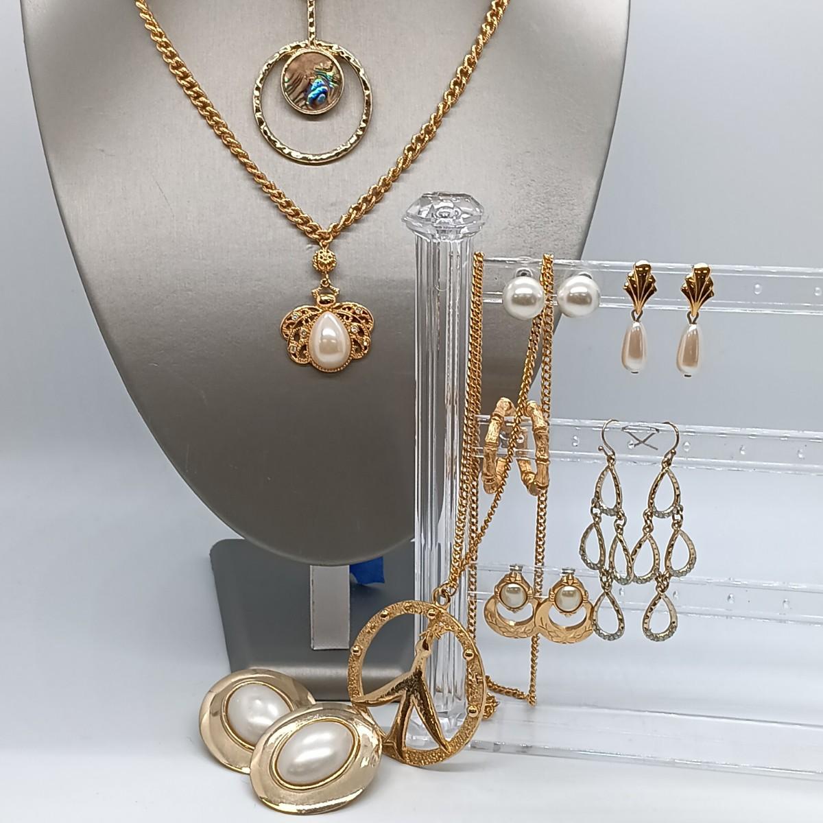LOT 153: Avon Queen Bee Pendant Necklace, Abalone Circle Pendant Necklace & More