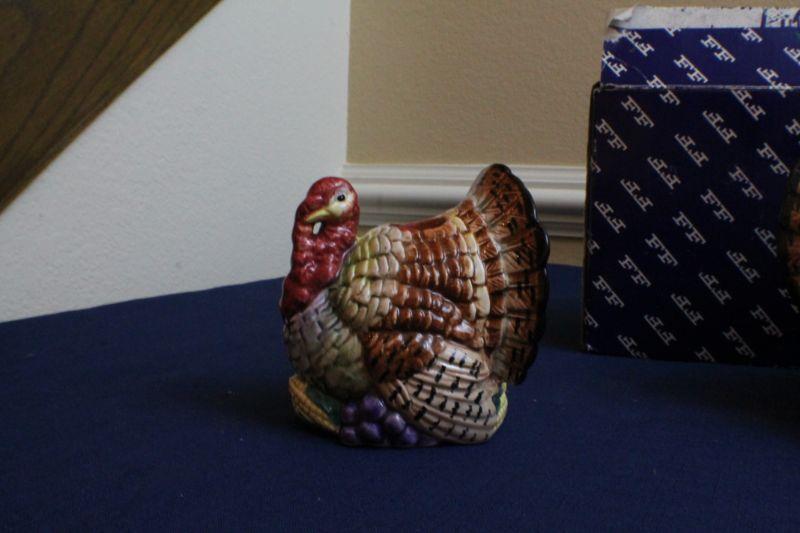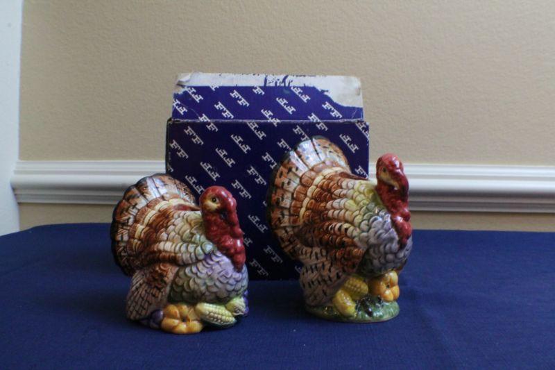 LOT #153: Pair of Fitz and Floydâ„¢ Ceramic Thanksgiving Turkey Decorative Figures