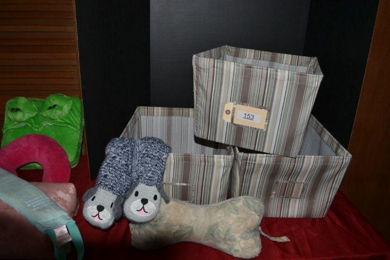 LOT 153  THREE STORAGE CONTAINERS AND PILLOWS