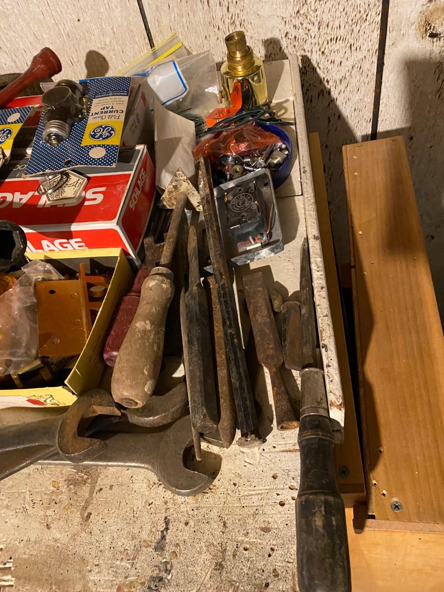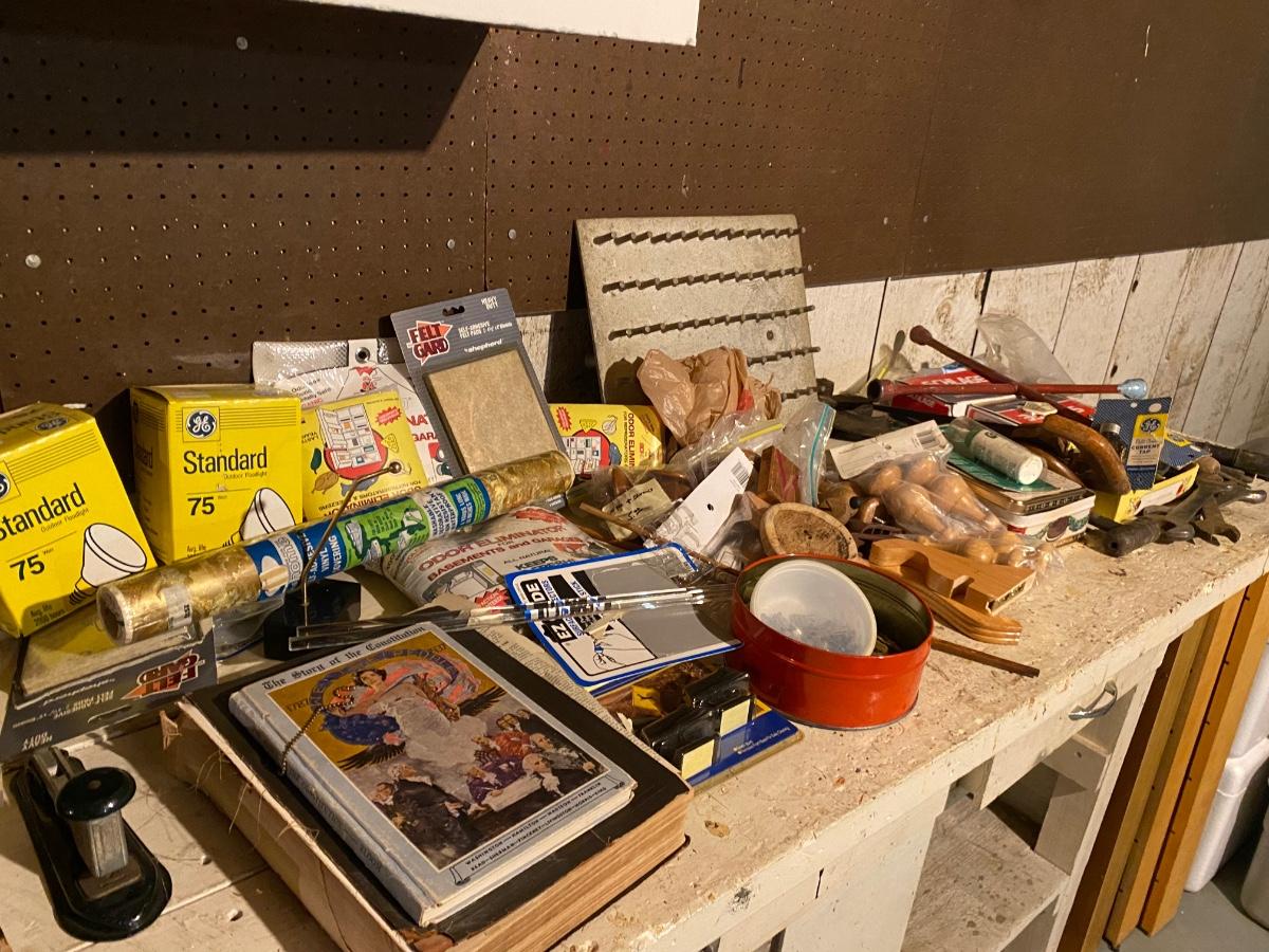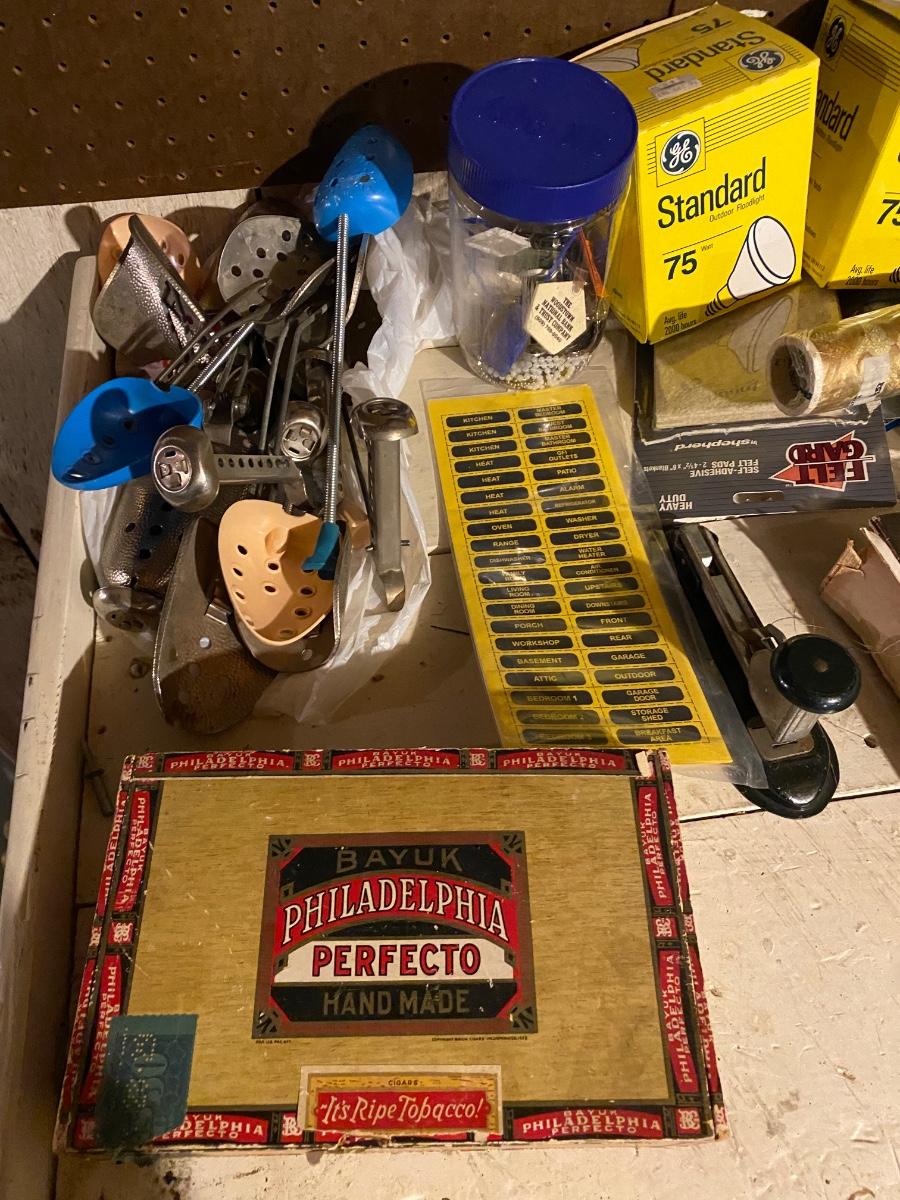 Basement odds and ends, cigar box, tools, books and more. Please see all pictures as they are the best representation of the items. The pictures show condition, measurements if taken, and what is included in the lot. Due to the large amount that we photograph and the time frame, we are not always able to take measurements. All items unless noted, are pre-owned and have been used. If you purchased furniture, you must bring help. We do not allow one person to carry large furniture out on their own. Bring help, tools and a truck for the safety of our client’s homes, and your personal safety. Company policy. Thank you.
