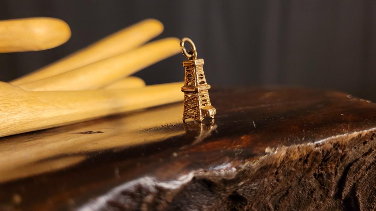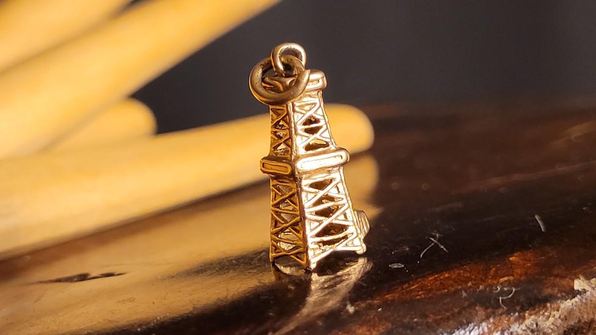 Lot 153: Vintage 14k Yellow Gold Oil Rig Charm Pendant