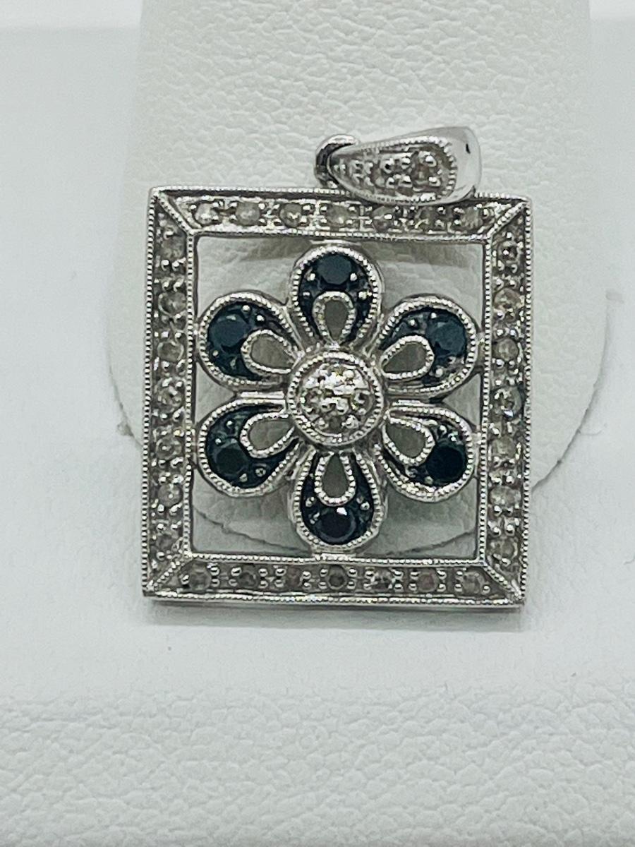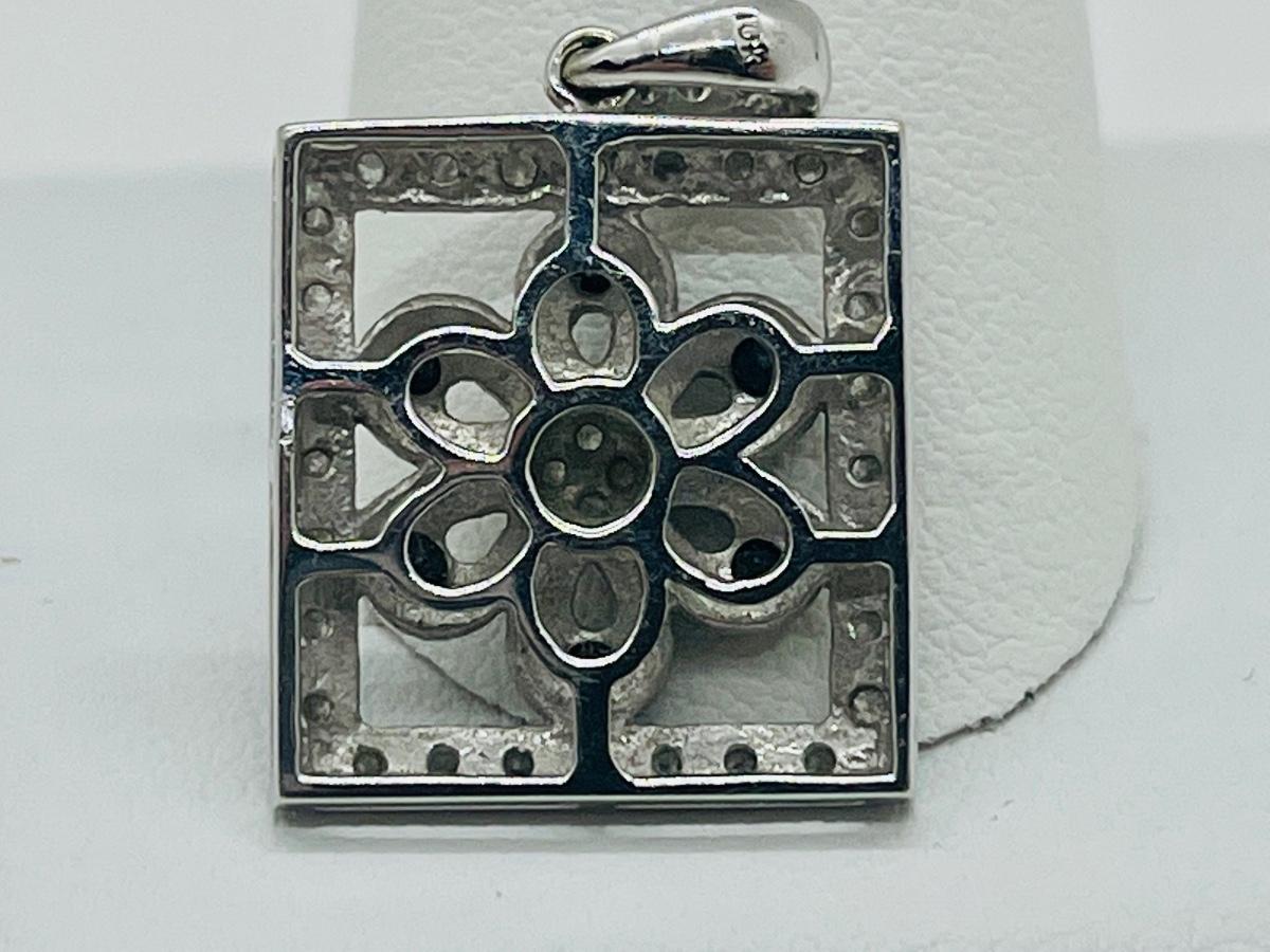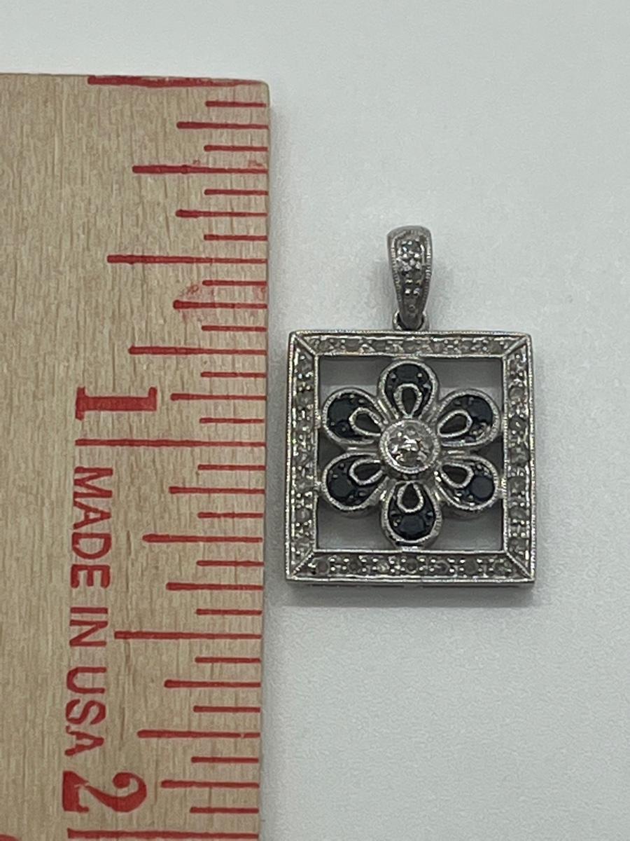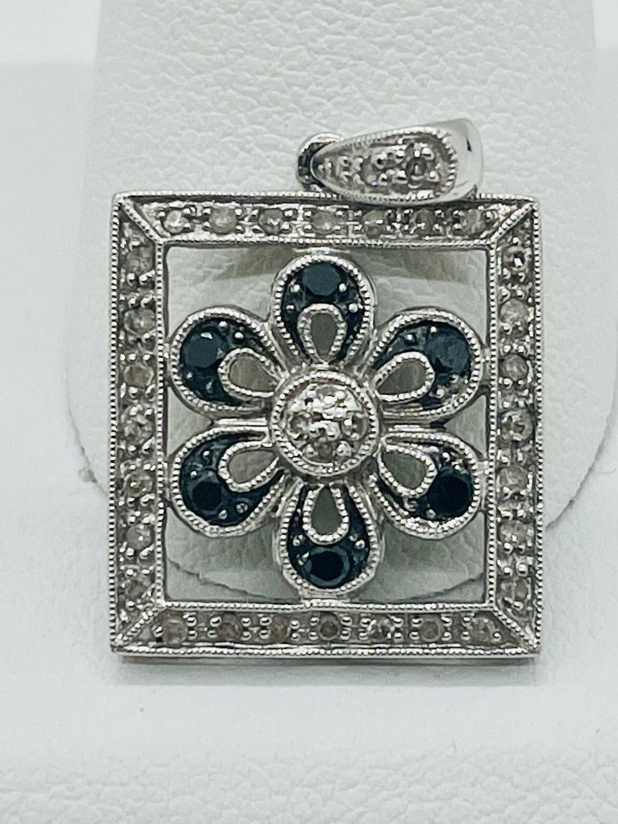 Lot 153: 2.5g 10k White Gold with White & Black Diamond Pendant
