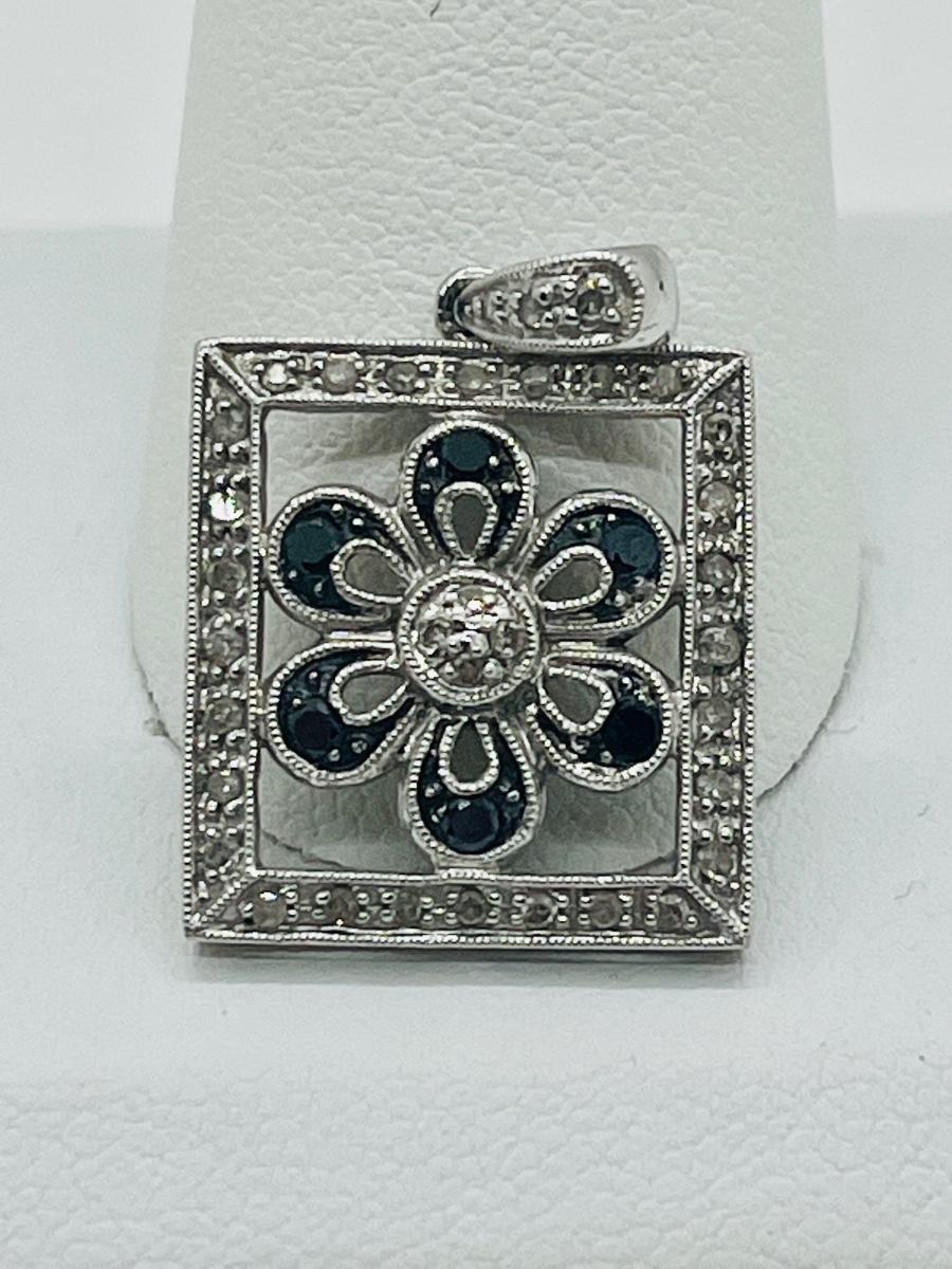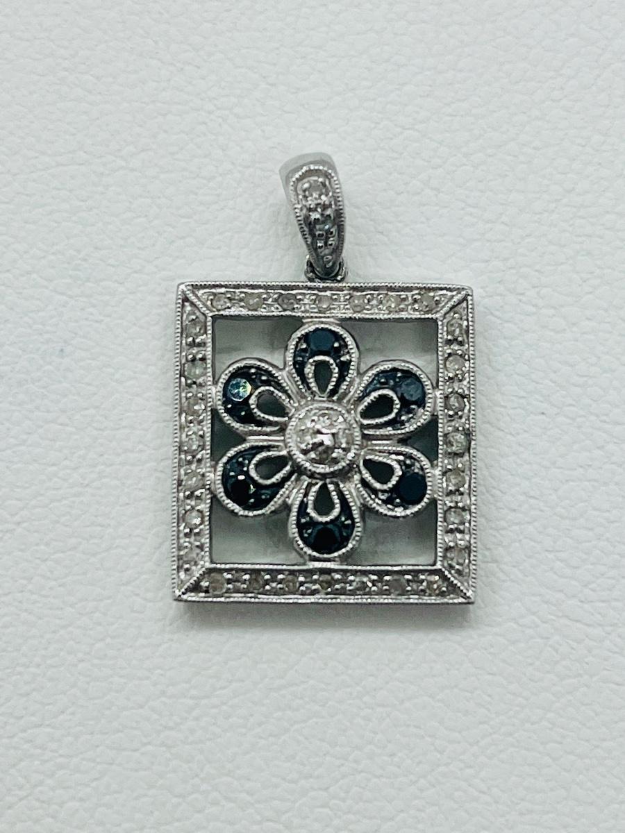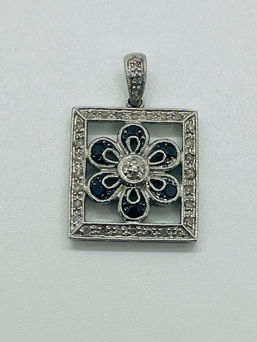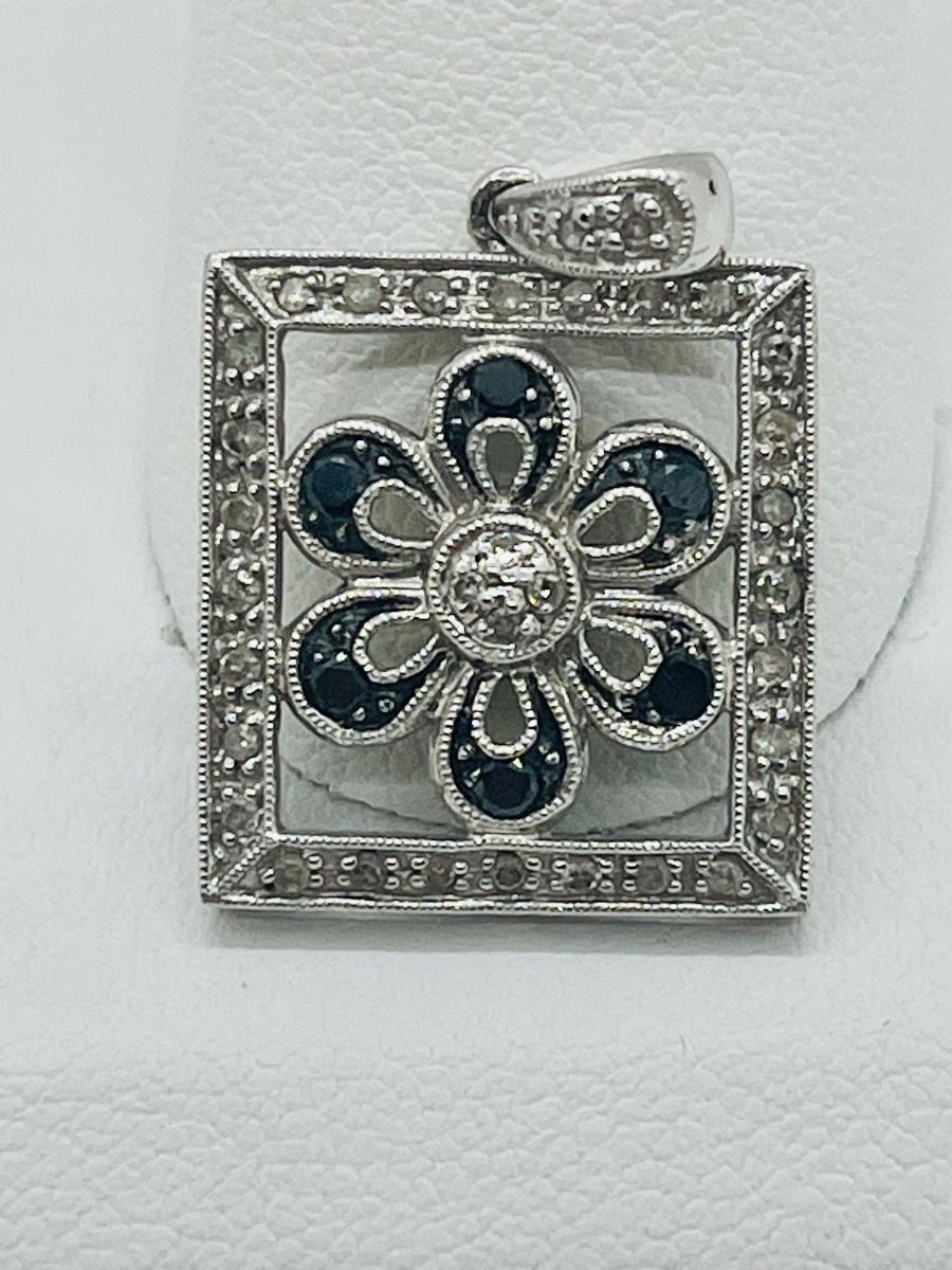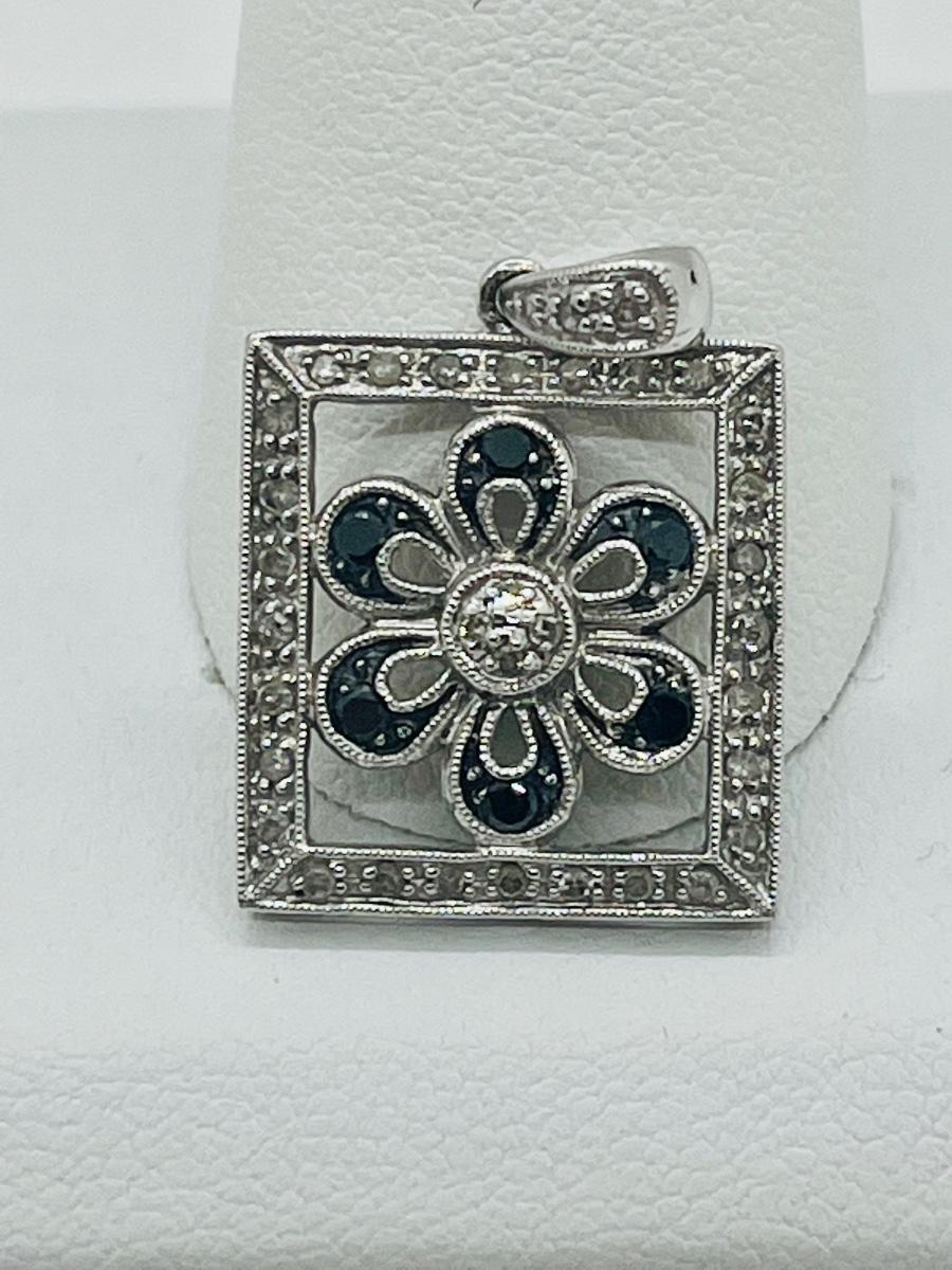 Lot 153: 2.5g 10k White Gold with White & Black Diamond Pendant