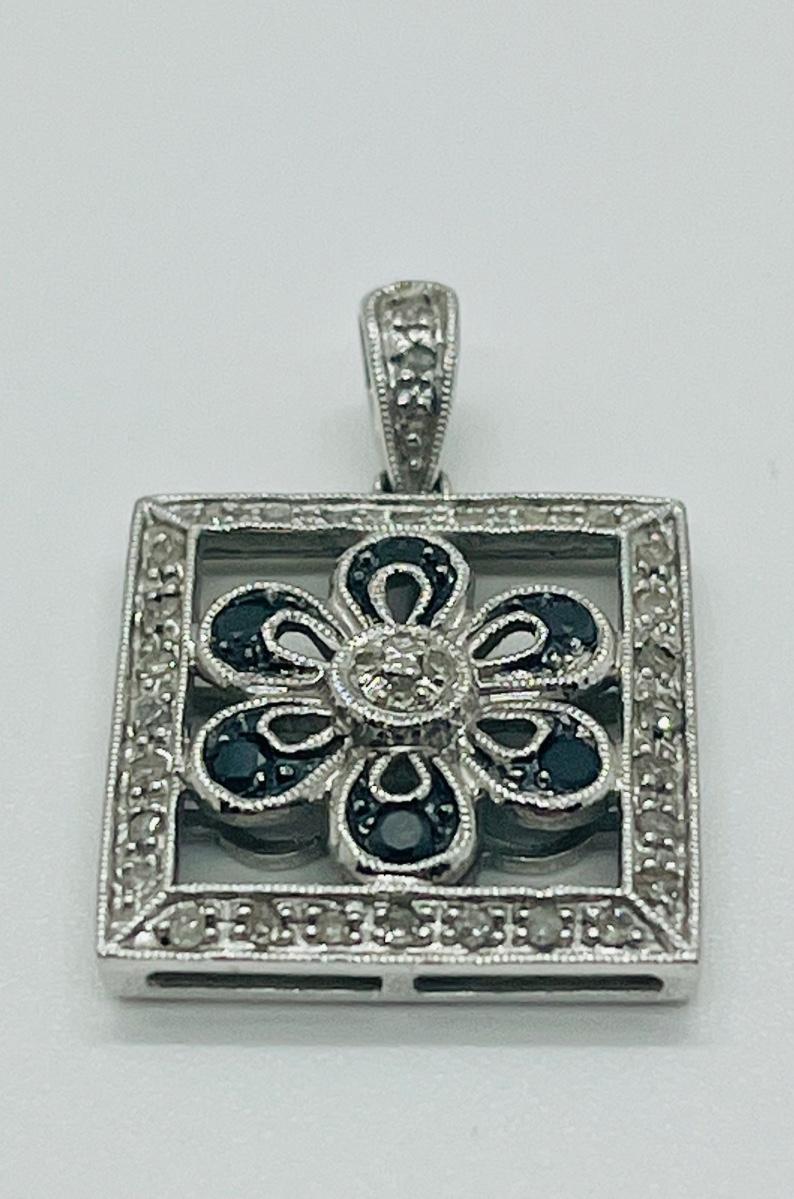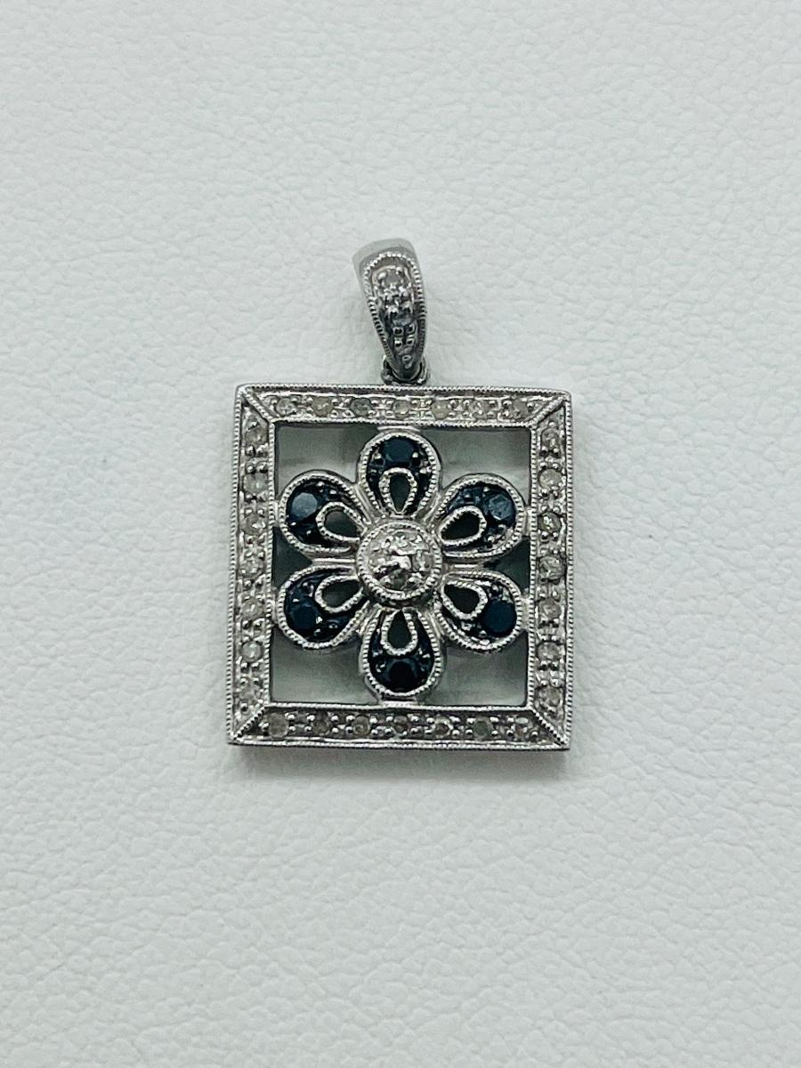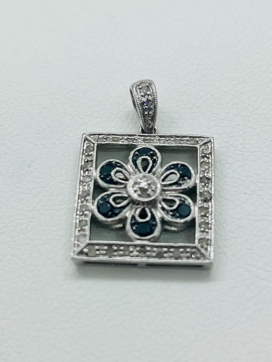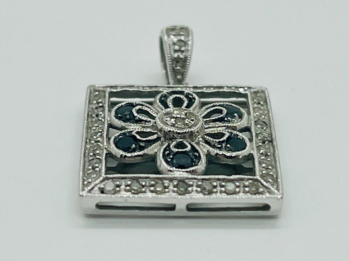 Lot 153: 2.5g 10k White Gold with White & Black Diamond Pendant