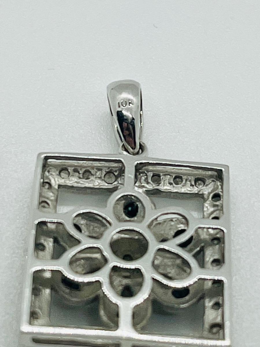 2.5g 10k white gold Diamond pendant. The pictures show condition, measurements if taken, and what is included in the lot. Due to the large amount that we photograph and the time frame, we are not always able to take measurements. All items unless noted, are pre-owned and have been used, and are untested. Thank you